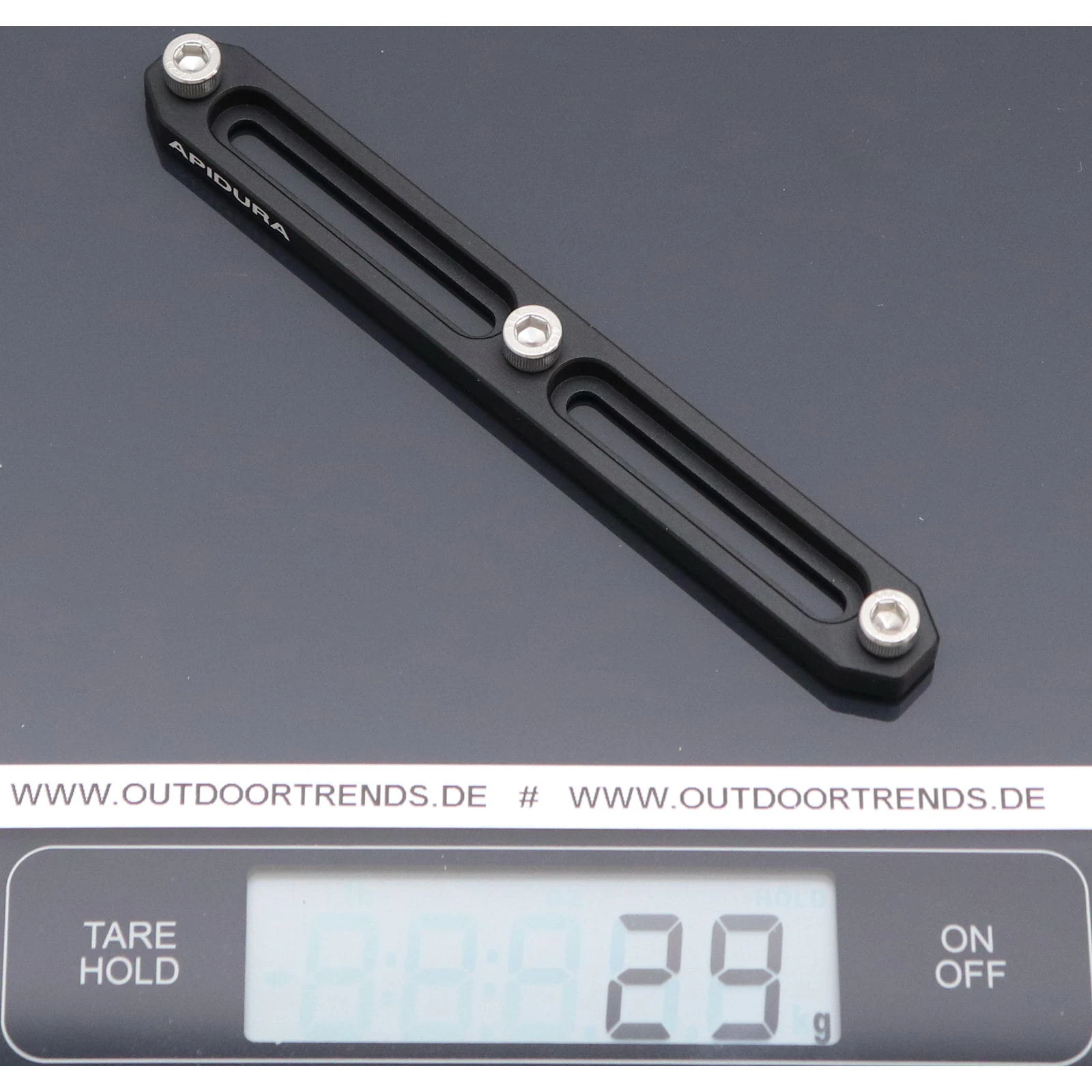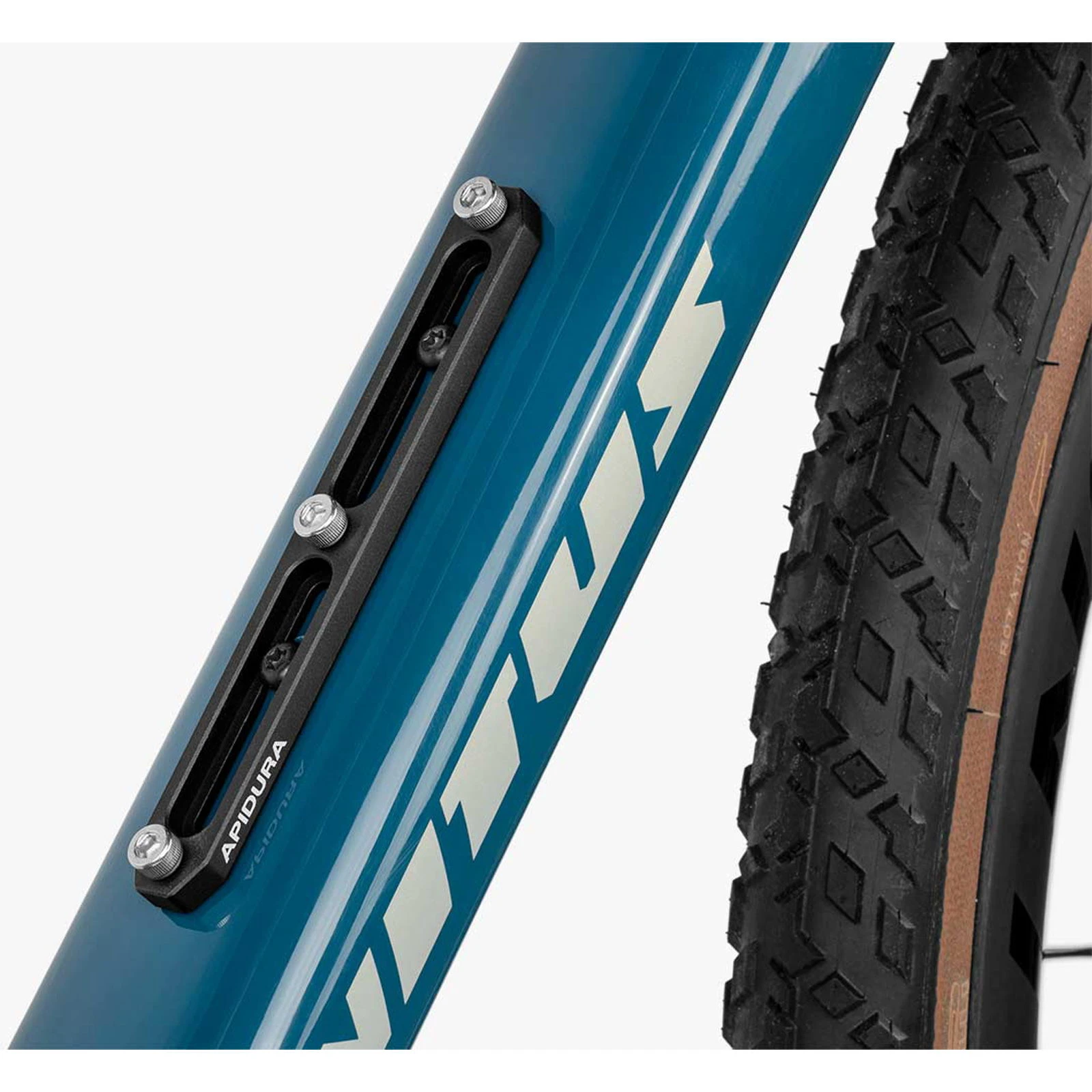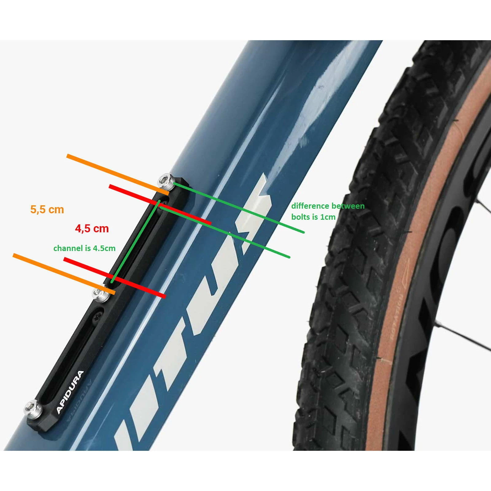 Mit dem Bottle Cage Adapter von Apidura bleiben Sie nun noch flexibler beim Ausrüsten des Rades. Dank des großen Befestigungsbereiches (55 mm auf dem Fahrradrahmen) lässt sich der Adapter an genau der Stelle am Rad befestigen, wo er mit den Bike-Packingtaschen sich nicht in die Quere kommt. Auf dem Adapter gibt es drei Befestigungspunkte für die Standard-Trinkflaschenhalter bzw. Trinkflaschenhalter mit drei Schrauben (Trinkflaschenhalter nicht im Lieferumfang). Optimal passend für Flaschenhalter mit seitlicher Entnahme.