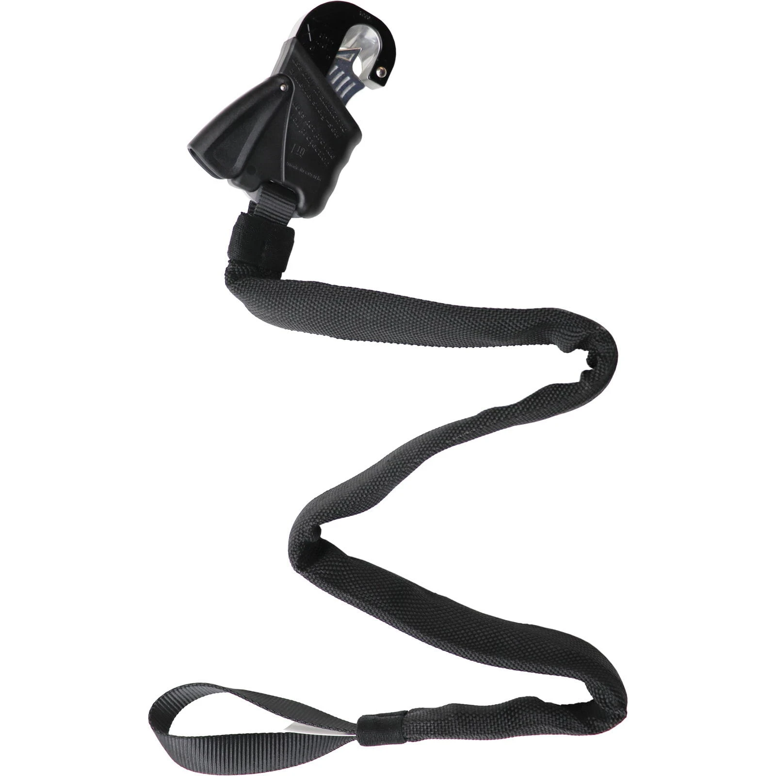 Der ferrata.bloc läßt sich als “dritter arm” mit jedem Klettersteigset kombinieren. Aufwärts läuft er locker am Drahtseil, im Falle eines Sturzes blockiert er an Ort und Stelle. So verhindert der Bremsarm weite stürze bis zur nächsten Zwischensicherung. Die Markierung “this side up” zeigt dem Anwender jederzeit, ob der Bremsarm richtig am Drahtseil eingehängt ist. Der Bloc kommt incl. Bandfalldämpfer, ersetzt aber keinenfalls ein Klettersteigset!