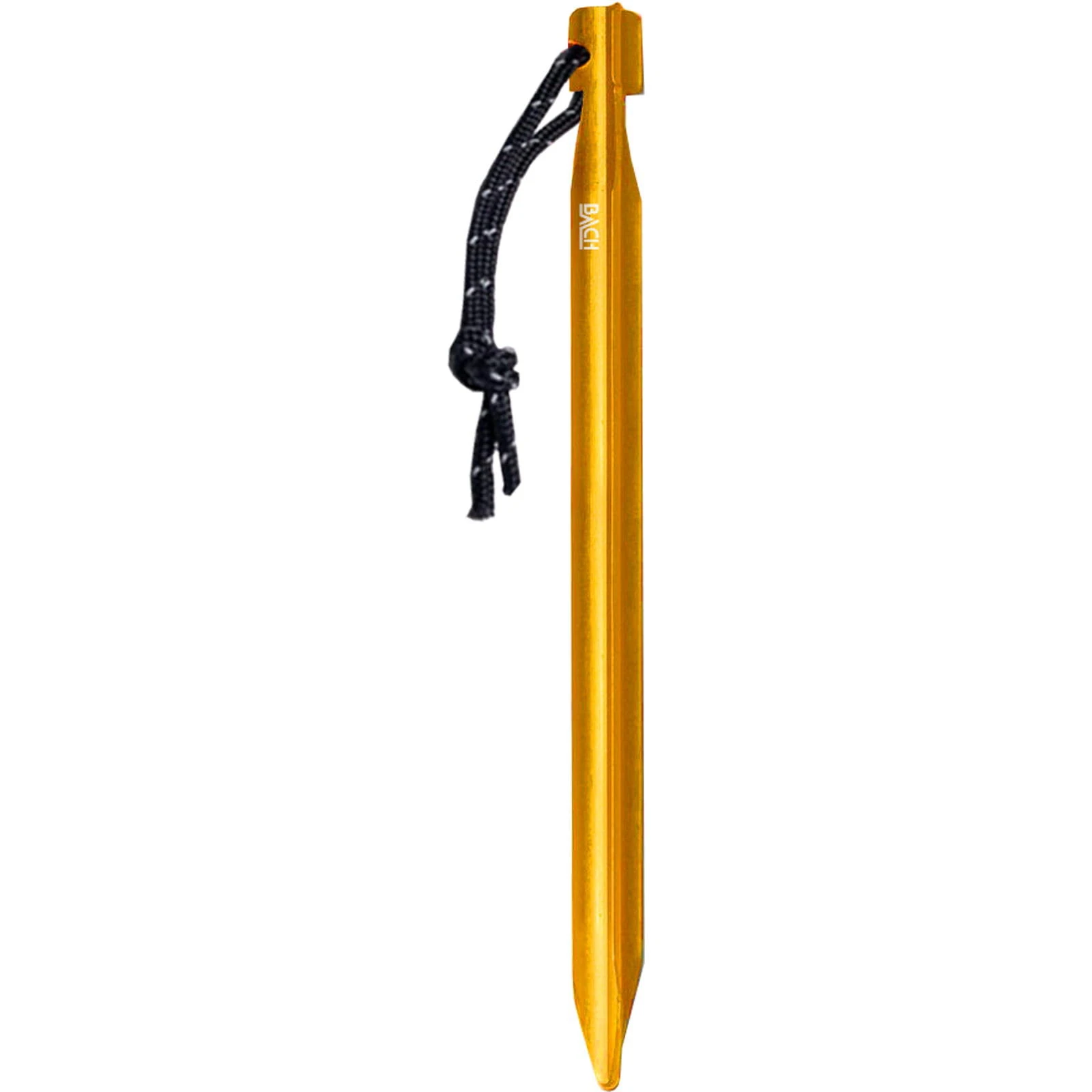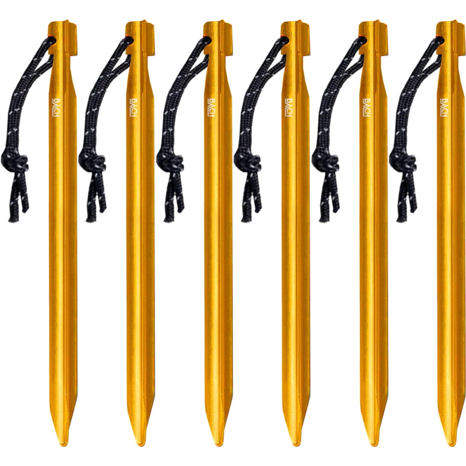 Die UL Twisted Y22 Pegs von BACH sind ultraleichte, geschwungene Heringe aus Aluminium. Diese Aluminumheringe in 22 cm Länge können in nahezu allen Bodenarten verwendet werden, eignen sich aber besonders für feste Böden. Die Y-Form sorgt für ein gutes Eindringen in den Boden und bietet einen effektiven Halt. Eloxierte Aluheringe in goldgelb mit Kordel zum rausiehen eigenen sich für Zelte, Tarps und andere leichte Dinge, bei denen es auch auf das Geiwcht ankommt.