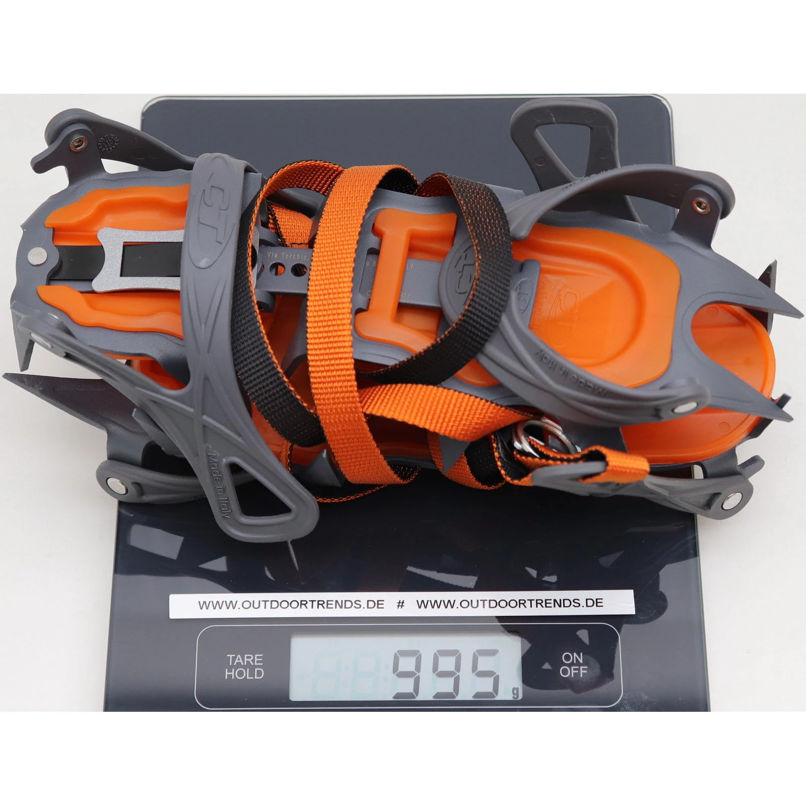 | Merkmale | austauschbare Einrast-Antistollplatten, die das Anstollen von Schnee unter dem Steigeisen effektiv verhindern, gerippte Frontzacken für einen besseren Halt auf de Eis, klassische Variante mit weiten Bindungsschlaufen aus Polymer, um das Anpassen an jeden Schuh, sowohl mit als auch ohne Rand, zu erleichtern, neuartiges Doppelhebelsystem für die Größenanpassung, leicht verwendbar auch mit nur einer Hand, Struktur aus gehärtetem und lackiertem Stahl, T-Shape Frontalzacken, extrem aggressiv für eine besseres Eindringen in hartes Eis, Transportbeutel mit einbegriffen |
