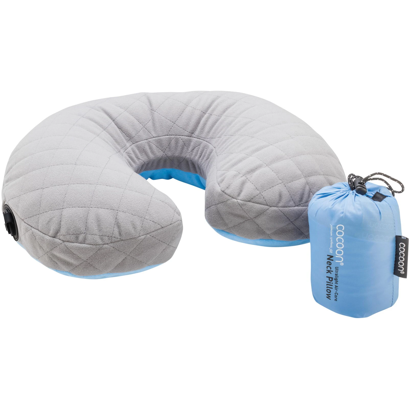 Das Air-Core U-Shaped Neck Pillow von Cocoon ist ein Nackenkissen mit synthetischer Füllung, in deren Mitte sich ein aufblasbarer Luftkern befindet. Es verbindet den Komfort und die Stützwirkung erstklassiger Kissen mit minimalem Packmaß. Mit Hilfe eines Ventils kann die Stützwirkung des COCOON Air-Core U-Shaped Neck Pillow blitzschnell und individuell den eigenen Bedürfnissen angepasst werden. Ein kleiner Reißverschluss in der Hülle ermöglicht es, den Luftkern herauszunehmen, um die Hülle des Air-Core U-Shaped Neck Pillow zu waschen oder den Kern ggf. zu reparieren.