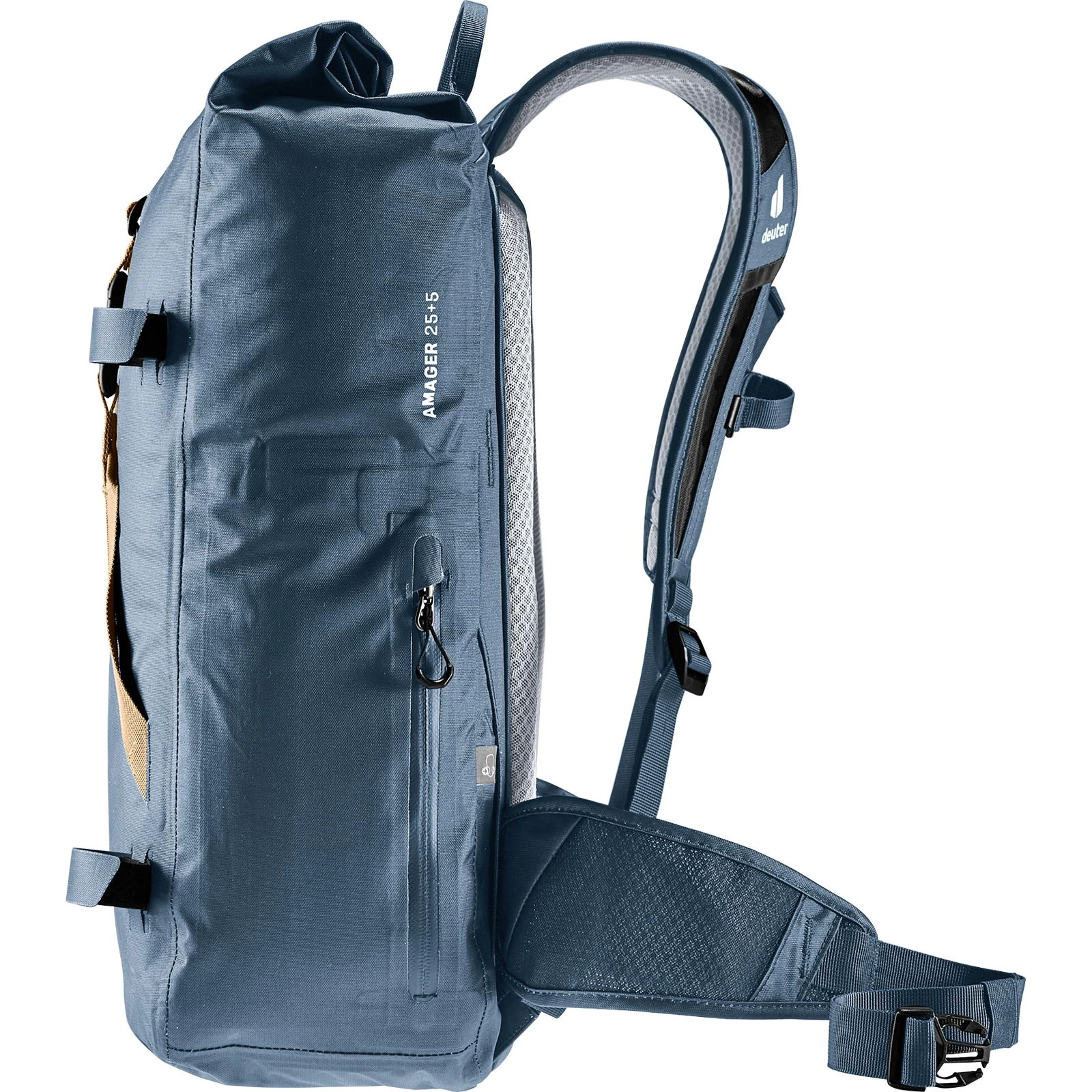 Der Amager 25+5 ist ein wasserdichter, komfortabler und gut belüfteter Fahrradrucksack mit Rollverschluss. Egal ob auf dem Weg zur Arbeit oder beim Shoppen, der Großstadtdschungel fordert Gleichgewicht und ist schweißtreibend zugleich. Da ist es wichtig, dass der Lastenschwerpunkt des Daypacks körpernah liegt und die Luftzirkulation maximal ist. Dafür sorgen seine Bikesport-erprobten Komptonenten: Das komfortable Airstripes Tragesystem mit reduzierter Rückenauflage, das luftdurchlässige Air Spacer Mesh, die ergonomisch geformten, perforierten Schulterträger und Hüftflossen und der verstellbare Brustgurt. Reflektierende Elemente und Befestigungslaschen für ein Rücklicht sorgen für mehr Sicherheit bei Regen und Dunkelheit. Der wasserdichte Fahrrad-Rucksack bewahrt Inhalt und die einzippbare Organisationseinheit für Laptop, Tablet, Dokumente und andere Arbeitsunterlagen sicher vor dem Eindringen der Nässe bei Regen oder Spritzwasser. Eine wasserdichte Reißverschluss-Tasche seitlich am Rücken ermöglicht den einfachen und schnellen Zugriff auf das Smartphone. Der Rollverschluss bietet nicht nur zuverlässigen Schutz vor Nässe, sondern auch zusätzlichen Stauraum. Die justierbare Halterung vorne und Materialschlaufen vorne und seitlich, zur Befestigung von Jacken oder zusätzlichem Gepäck, runden den Lifestyle- und Commuter-Rucksack ab und machen ihn zu einem perfekten Allrounder im Alltag.