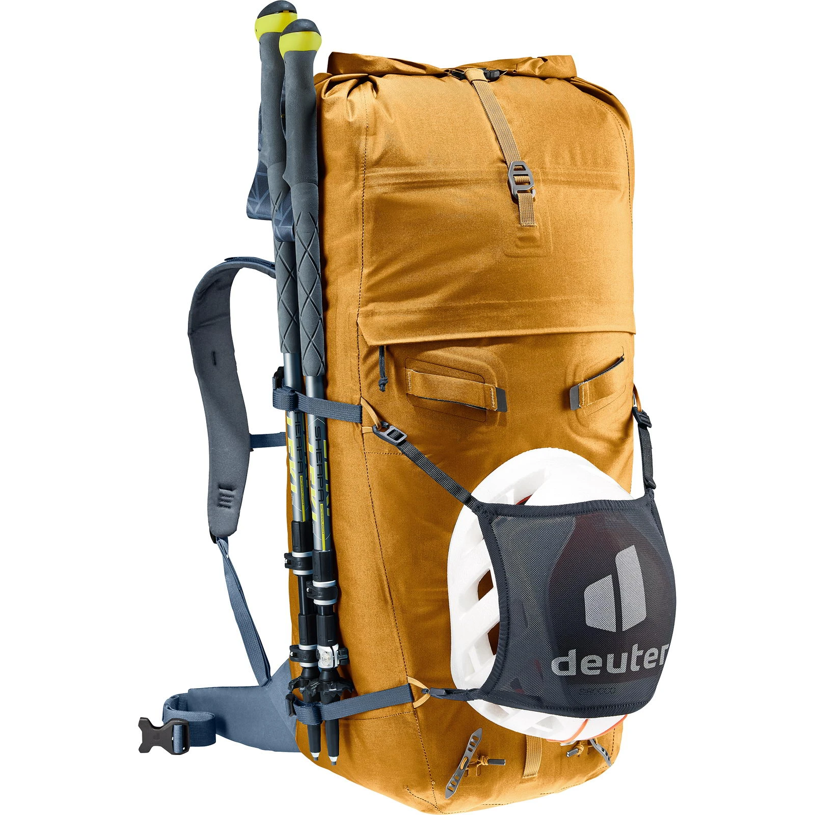 | Merkmale | Brustgurt mit Signalpfeife, Eisgerätehalterung, Frontfach mit Reißverschluss, Lastkontrollriemen, Materialschlaufen auf den Schulterträgern für Brille etc., Pickelhalterung, Rollverschluss (Wickelverschluss), Schlaufen für Helmhalterung (Halterung optional), Schlüsselclip, Seilfixierung oben, seitliche Kompressionsriemen, SOS Notfallhinweise, Stockhalterung, stufenlos verstellbarer Brustgurt, Trageschlaufe hinten oben, verstaubarer Hüftgurt, Volumenerweiterung durch Roll-Top um 10 Liter |