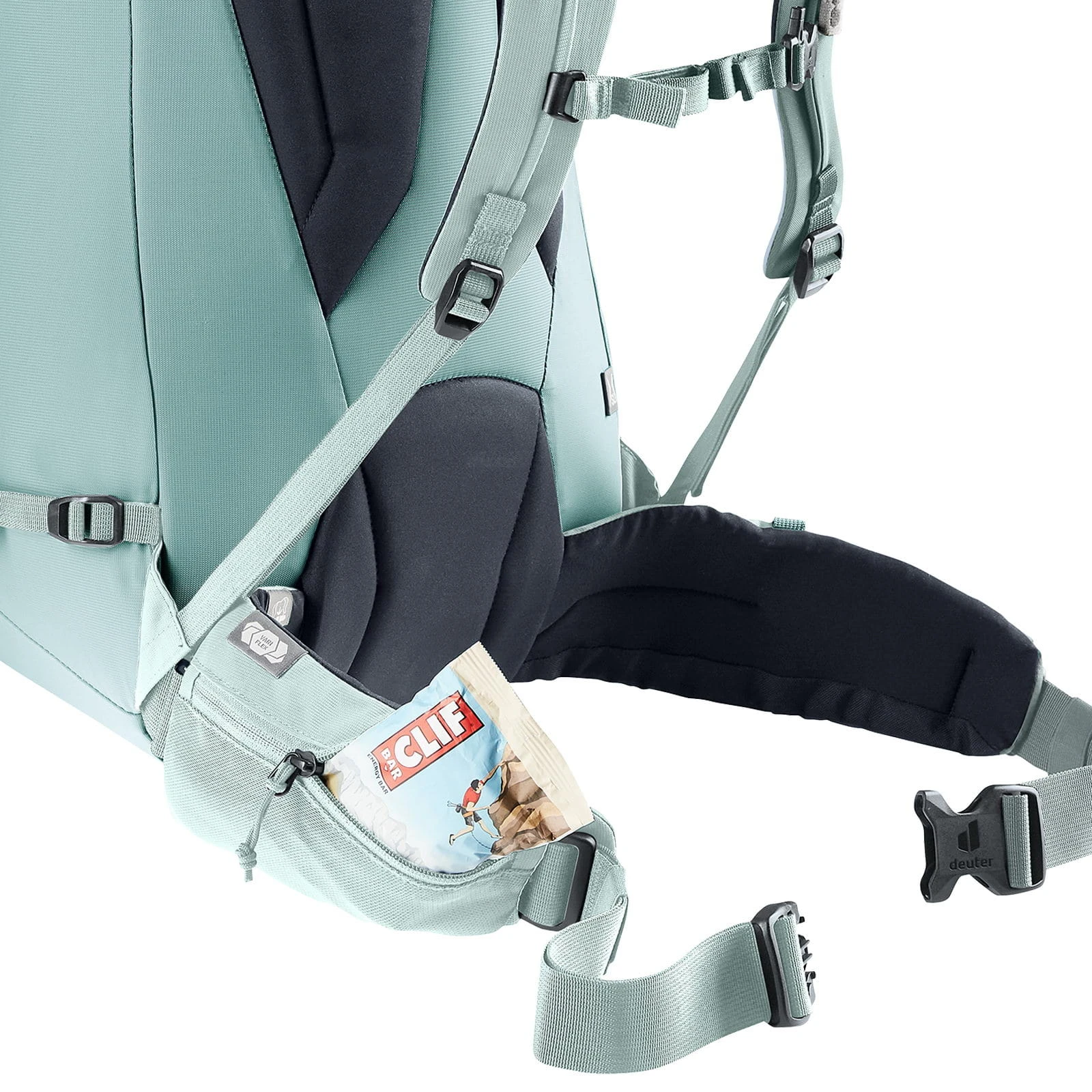 Der Guide 42+8 von deuter für Damen bietet den bestmöglichen Kompromiss aus Komfort, Gewicht und Funktion und ist der ideale Begleiter für mehrtägige alpine Unternehmungen. Das schlanke Alpine Tragesystem kombiniert einen festen, sicheren Sitz mit höchstem Tragekomfort und angenehmer Belüftung zwischen den beiden Softstripe-Rückenpolstern. Die anschmiegsamen Rückenpolster halten das Gewicht der Ladung sicher und kontrollierbar nah am Körperschwerpunkt für ein gutes Gleichgewicht. Der Tourenrucksack mit einem Fassungsvermögen von 42 Litern verfügt über einen höhenverstellbaren Deckel, mit dem das Volumen um 8 Liter erweitert werden kann. Um Gewicht zu sparen, können der Rucksackdeckel und der gepolsterte Hüftgurt auch abgenommen werden. Das Deckelfach, eine Reißverschlusstasche innen und eine am Hüftgurt bieten Platz für Kleinigkeiten oder Wertgegenstände, während das Hauptfach durch die große Öffnung an der Oberseite oder die J-förmige Frontöffnung leicht und schnell zugänglich ist. Seitliche Kompressionsriemen regulieren das Volumen und halten so das Gewicht nah am Körper. Dank Befestigungsmöglichkeiten für Pickel, Eisgerät und Stöcke, Lastenkontrollriemen, Materialschlaufen und Helmnetz ist der Guide 42+8 SL optimal für den alpinen Einsatz ausgestattet.