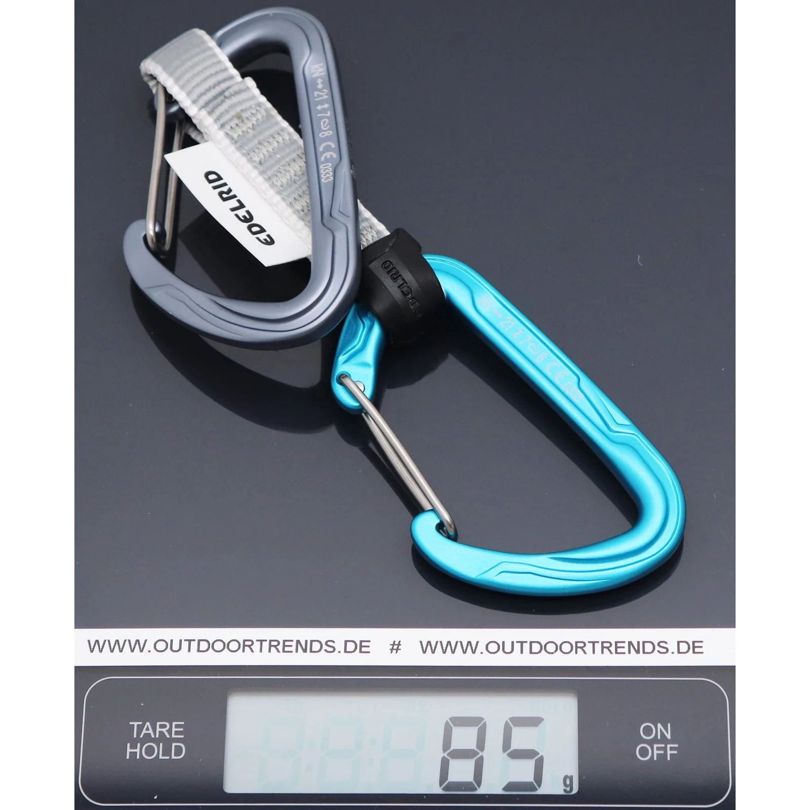 | Merkmale | 16 mm Polyester-Schlinge inklusive ANTITWIST zur Fixierung des unteren Karabiners, Karabiner mit Drahtschnapper für besonders niedriges Gewicht, Karabiner mit großer Seilauflagefläche, Karabiner mit H-Profil-Konstruktion für bestmögliche Materialausnutzung bei minimalem Gewicht |