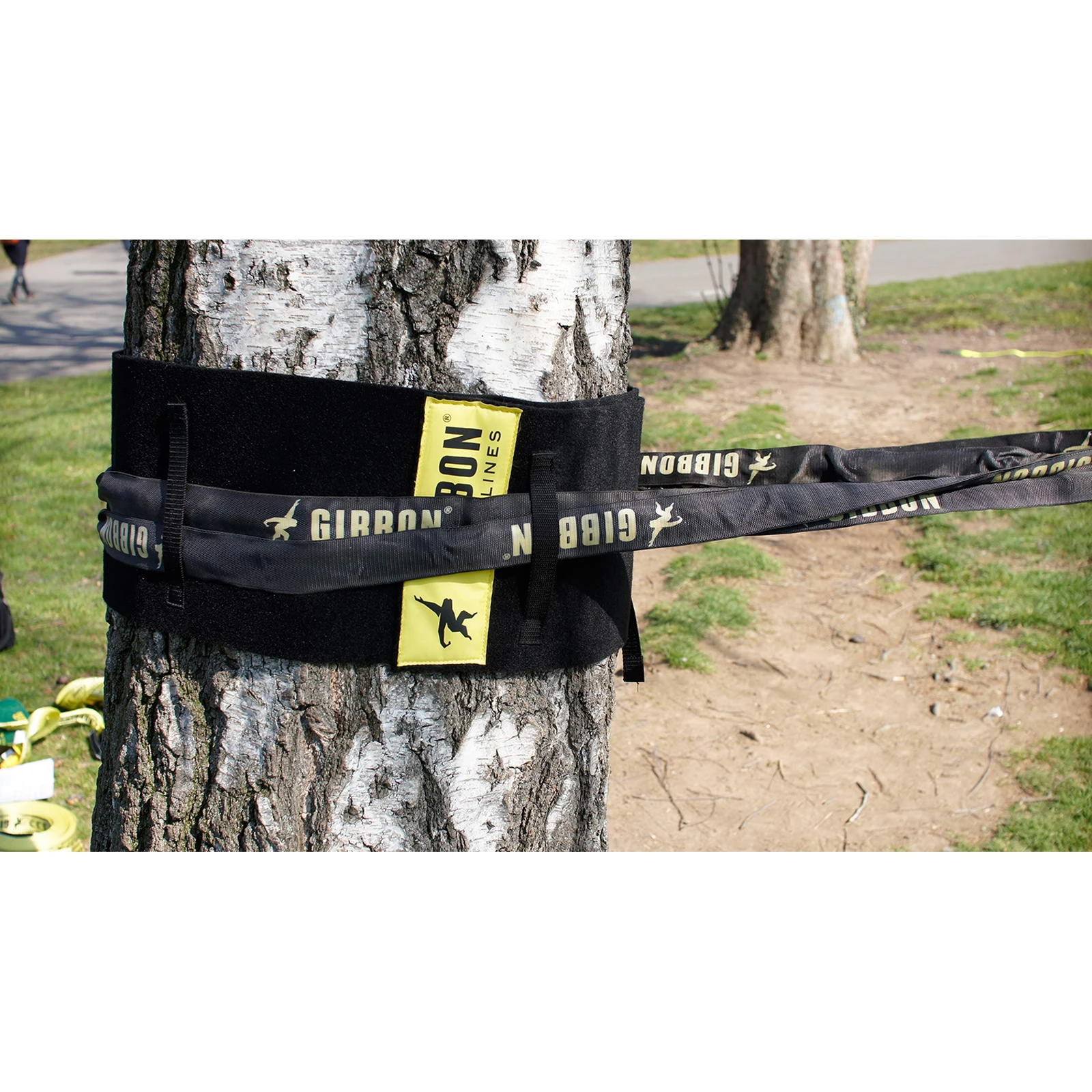 Der GIBBON Baumschutz XL bietet noch mehr Schutz für Baum und Slackline. Die seitlich angebrachten Klettverschlüsse vereinfachen den Aufbau aller GIBBON Systeme und verhindern das Abrutschen der Slackline nach unten. Auch Longline Rundschlingen bleiben während des Aufbaus fixiert.