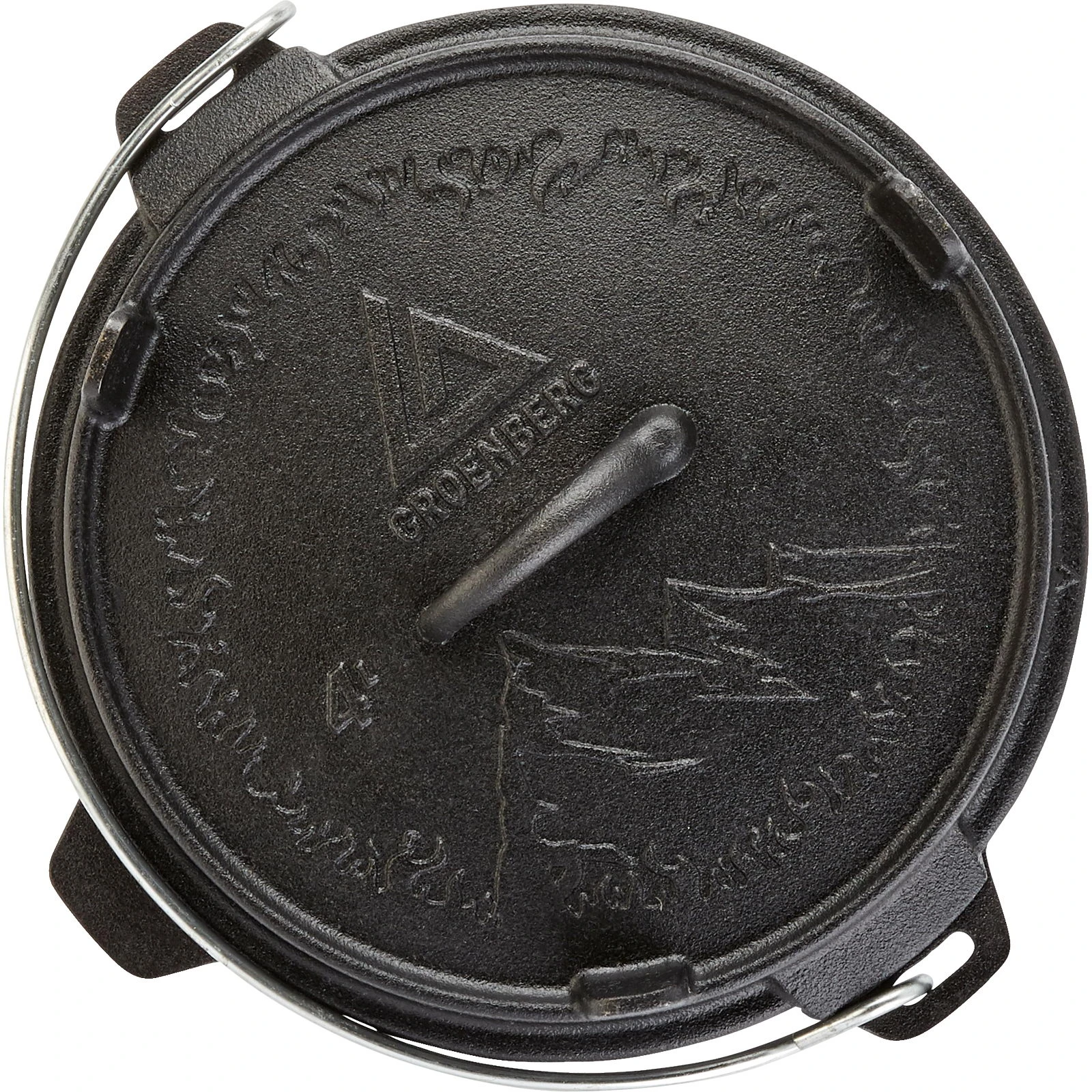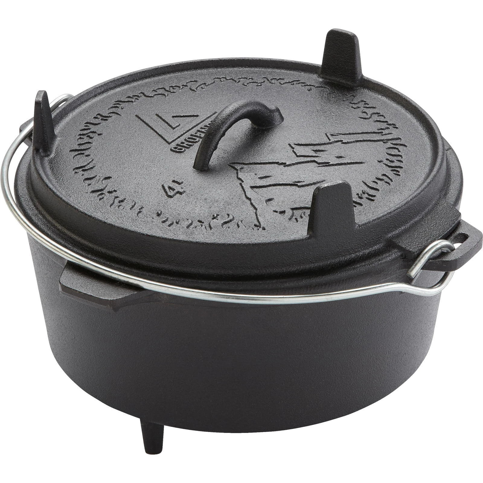 Der ASKJA POT 4L von Groenberg ist ein gusseiserner Topf mit hoher Wärmeleitfähigkeit und konstanter Rundumwärme. So werden Eintöpfe, Suppen, Gemüse, Fleisch oder Brot schonend zum Genuss. Der Deckel ist leicht konkav gewölbt damit das Kondenswasser im Inneren zum Rand hin abfließen kann und beim Anheben des Deckels nichts ins Gericht tropft. Ein Dampfauslass am Deckel verhindert lästiges Klappern oder Überkochen. Besonders Praktisch: Der Deckel lässt sich auch als Pfanne oder Servierteller nutzen und steht, dank seiner Füße auf der Oberseite, leicht erhöht und absolut sicher. Geeignet für Grill, Gasherd, Backofen oder offenes Feuer. Der Topf ist noch nicht eingebrannt und muss vor der ersten Benutzung entsprechend vorgenommen werden.