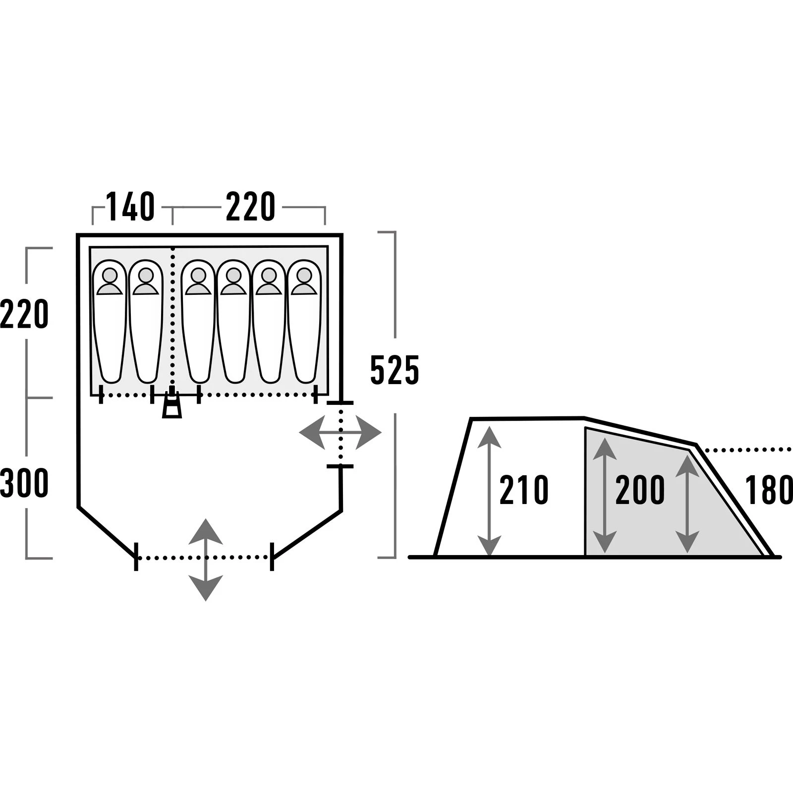 | Maße Außenzelt ca. | 525 x 370 x 210 cm |