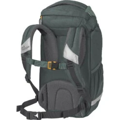 | Merkmale | Deckelfach mit Reißverschluss außen, Einschubfach innen, Fronttasche mit Klettabdeckung, herausnehmbare Sitzmatte, höhenverstellbarer Brustgurt, Namensetikett innen, reflektierende Elemente, Tragegriff oben, zwei seitliche Netztaschen |
