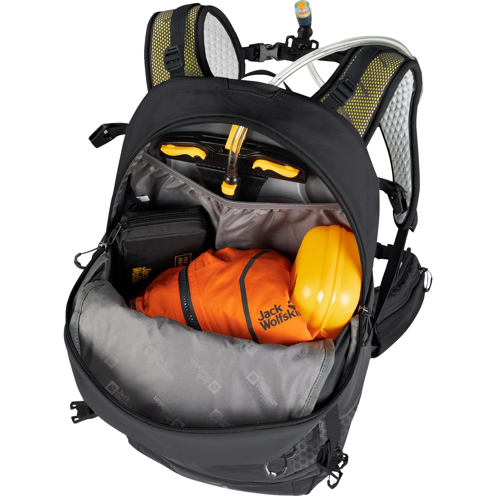 | Merkmale | Blinklichthalterung, Bodenfach mit separatem Zugang von außen, Brustgurt mit Signalpfeife, Einschubfach im Hauptfach, Einschubfach vorne in der Weite regulierbar, gepolsterter Hüftgurt, Halterung für Trinkblase, höhenverstellbarer Brustgurt, integrierte Regenhülle, Materialschlaufen auf den Schulterträgern für Brille etc., reflektierende Elemente, Schlauchdurchführung für Trinksystem, Schlüsselclip, seitliche Kompressionsriemen, Trageschlaufe hinten oben, verstaubare Helmhalterung, Werkzeugfach vorne mit Reißverschluss und durchdachter Fächeraufteilung, zwei elastische Seitentaschen, zwei Reißverschlusstaschen an den Hüftflügeln (aus Mesh), Zwischenboden zwischen Bodenfach und Hauptfach kann geöffnet werden |