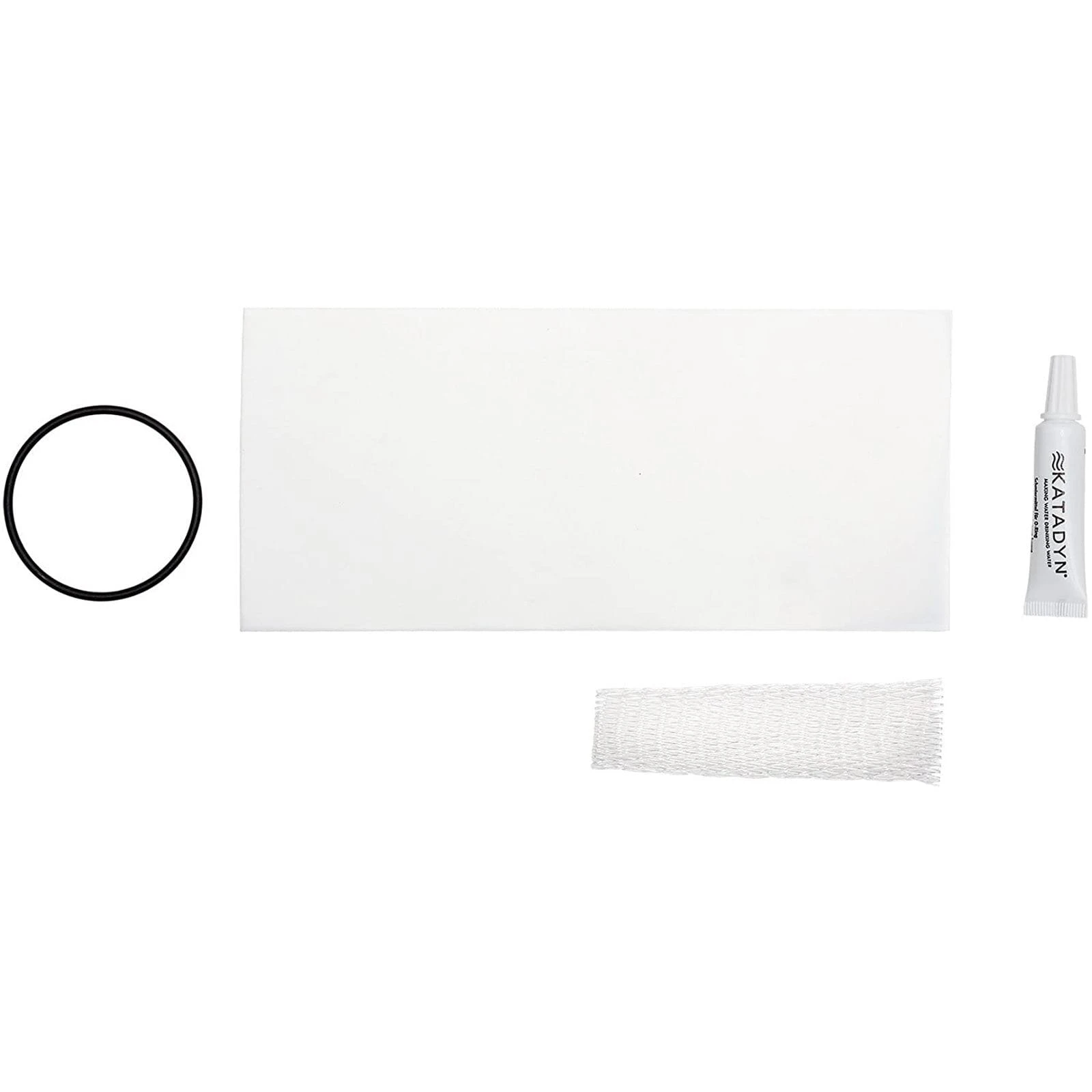 Wartungsset mit Ersatzteilen für Katadyn Hiker Pro. Inhalt: 1 O-Ring für Filterelement; 1 Filterschutz; 1 Netzgewebe; 1 Tube Silikonfett