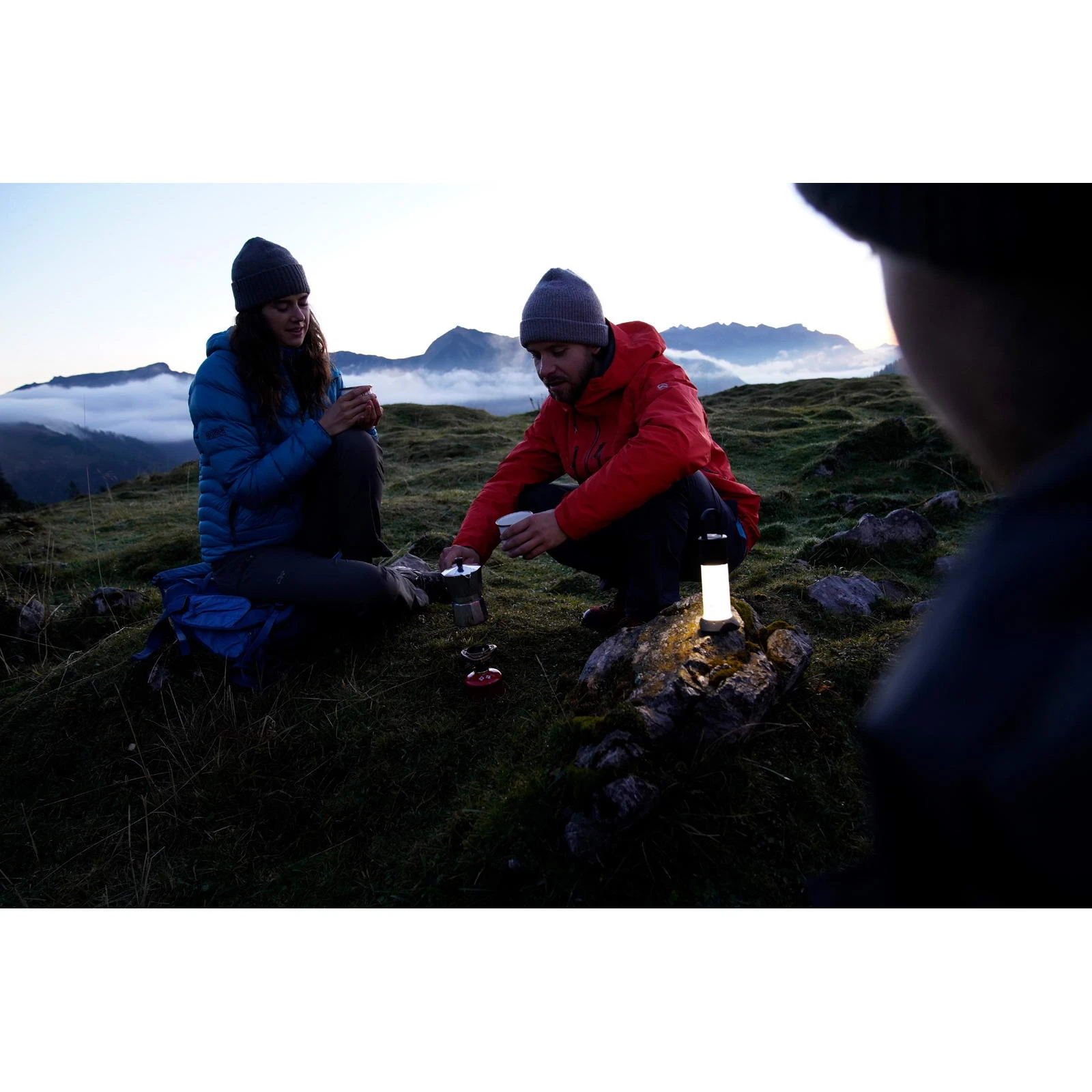 Die ML6 (Kaltweiß, 3700 bis 4200 Kelvin, Farbwiedergabeindex (CRI) 80) von Ledlenser ist eine moderne und vielseitige Campinglampe. Modernste Linsentechnologie sorgt für eine optimale Lichtverteilung bei maximaler Energieeffizienz. Mit einer blendfreien Ausleuchtung der Umgebung lässt sich dann auch ganz entspannt der perfekte Platz für die Lampe finden. Hierfür hat die ML6 neben Haken, abnehmbarem Standfuß oder Magnet alle Möglichkeiten parat. Darüber hinaus lässt sie sich auch noch als Power Bank für andere elektronische Geräte nutzen. So steht einer gemütlichen Atmosphäre nichts mehr im Wege.