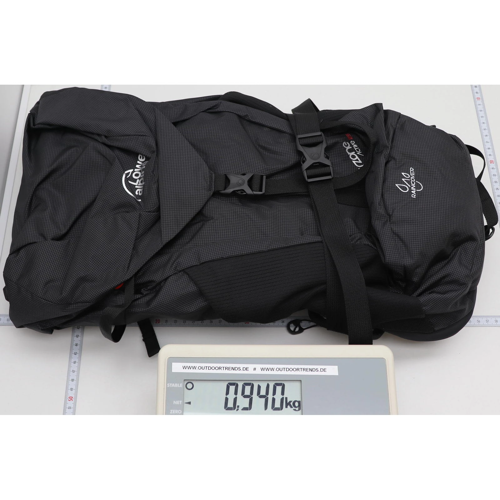 | Merkmale | Blinklichthalterung, Brustgurt mit Signalpfeife, Deckelfach mit Reißverschluss außen, Deckelfach mit Reißverschluss innen, Einschubfach innen, Frontfach mit seitlichem Reißverschluss, gepolsterter Hüftgurt, Halterung für Trinkblase, höhenverstellbarer Brustgurt, integrierte Regenhülle in separater Reißverschlusstasche am Boden, Lastkontrollriemen, Materialschlaufen auf den Schulterträgern für Brille etc., Schlauchdurchführung für Trinksystem, Schlüsselhalterung, seitliche Kompressionsriemen, Stockhalterung, Tragegriff hinten oben, zwei elastische Einschubfächer seitlich, zwei Reißverschlussfächer auf den Hüftflügeln |
