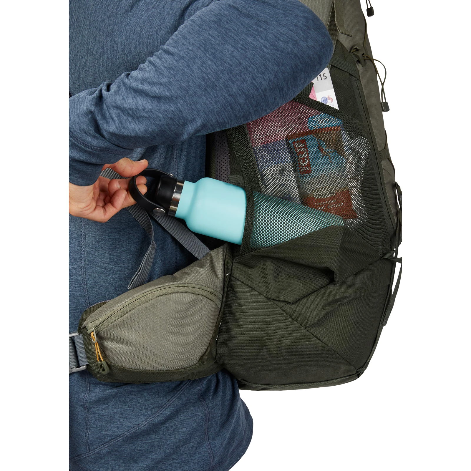 Der Sirac Plus 65 von Lowe Alpine zeichnet sich durch das komfortable und leichte Air Contour™ X-Rückensystem aus und ist ideal für lange Rucksackabenteuer und Trekkingtouren. Das verstellbare Air Contour™ X-Rückensystem erhöht den Tragekomfort, denn die strategisch platzierten Schaumstoffeinsätze polstern den Rücken und bilden gleichzeitig Luftkanäle, die für angenehme Kühle und Trockenheit sorgen. Der leichte, der Körperform angepasste Rucksack verlagert das Gewicht auf die Hüfte, so dass man sich in jedem Gelände frei bewegen kann, auch mit Gepäck für eine längere Tour. Mit dem Reißverschluss an der Vorderseite und einem separat zugänglichen Bodenfach, das durch eine innere Trennwand vom Hauptfach getrennt ist, lässt sich alles übersichtlich verpacken. Am gepolsterten Hüftgurt befinden sich praktische, leicht zugängliche Reißverschlusstaschen für Snacks oder einen Kompass. Ein geräumiges Deckelfach mit Schlüsselhalter bietet Platz für Wertsachen oder Dinge, die schnell griffbereit sein müssen. Der Trekkingrucksack ist für eine 3-Liter-Trinkblase ausgelegt und hat seitliche Netztaschen für Trinkflaschen, damit man unterwegs immer genügend Flüssigkeit zu sich nehmen kann. Außerdem verfügt er über Wanderstockbefestigungen, eine integrierte Regenhülle und ein elastisches Kordelzugsystem an der Vorderseite, das sich ideal zum Verstauen von nasser Ausrüstung eignet. Der Sirac Plus 65 besteht aus recyceltem Material, ist stabil, bequem und hat ein Fassungsvermögen von 65 Litern, die sich bequem und mit guter Luftzirkulation auf mehrtägigen Wanderungen tragen lassen.