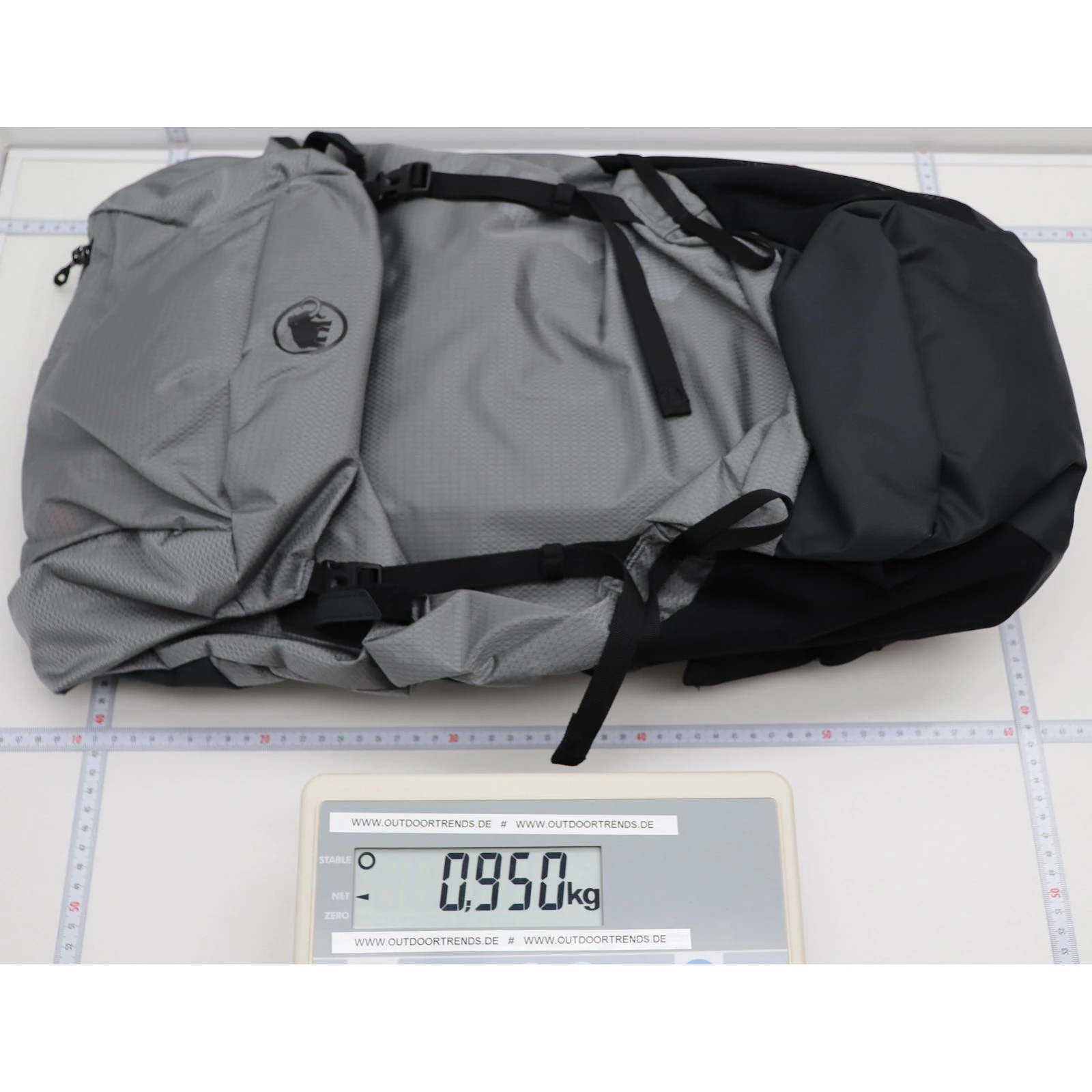 | Merkmale | Deckelfach mit Reißverschluss außen, Deckelfach mit Reißverschluss innen (aus Mesh), Einschubfach innen, elastische Kordelfixerung auf einem Hüftflügel, elastischer Brustgurt, elastisches Reißverschlussfach auf einem Hüftflügel, gepolsterter Hüftgurt, Halterung für Trinkblase, höhenverstellbarer Brustgurt, integrierte Regenhülle in separater Reißverschlusstasche am Boden, kompatibel zu MAMMUT-Connect, Lastkontrollriemen, Materialschlaufen auf den Schulterträgern für Brille etc., Netzrücken Tragesystem, Pickelhalterung, reflektierende Elemente, Schlauchdurchführung für Trinksystem, Schlüsselhalterung, seitliche Kompressionsriemen, Stockhalterung, Trageschlaufe hinten oben, zwei elastische Einschubfächer auf den Schulterträgern, zwei elastische Einschubfächer seitlich |