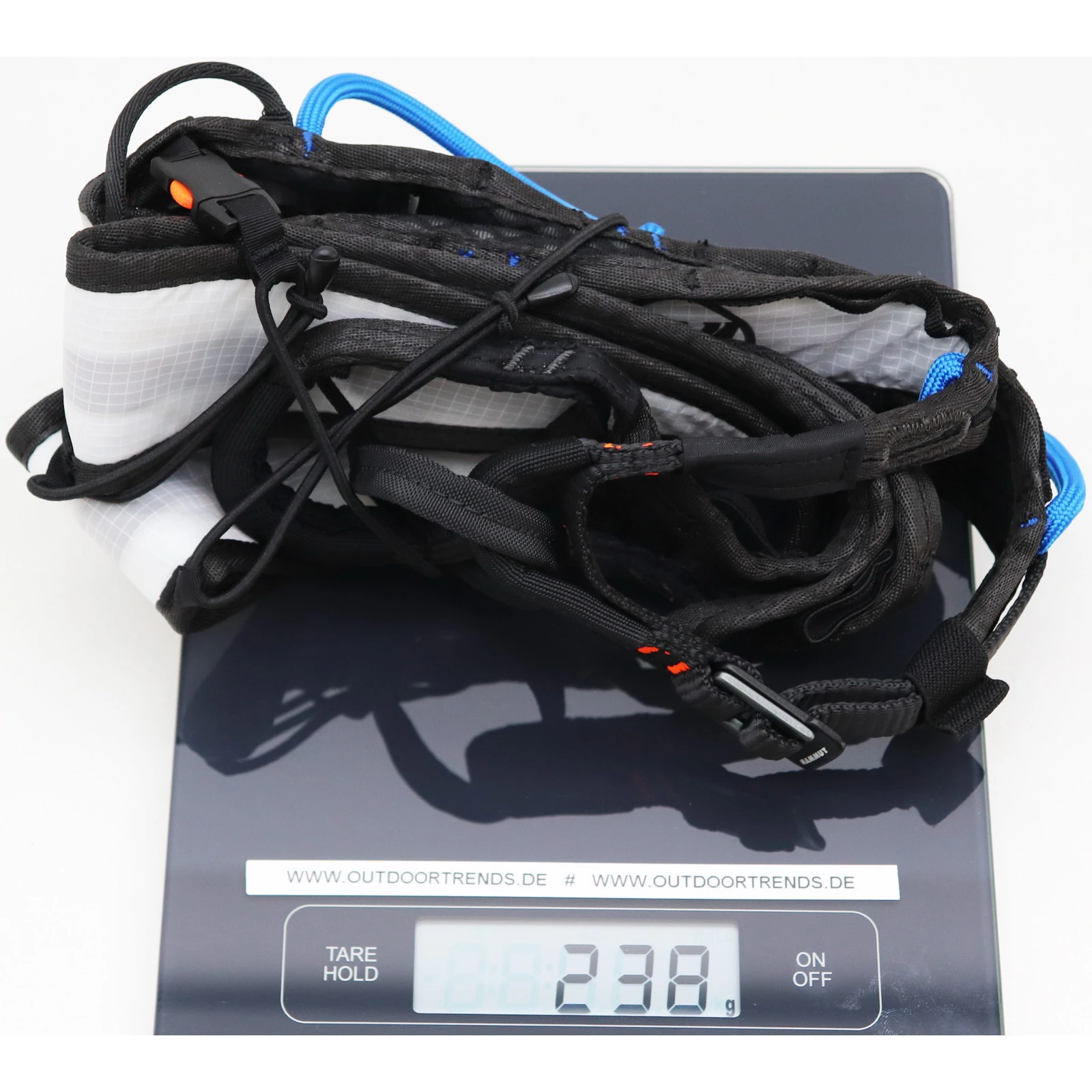 | Merkmale | Befestigung für Magnesium-Beutel, Befestigungsmöglichkeiten für 12 Eisschraubenkarabiner, Einbindeschlaufe aus hochfestem Dyneema, Fixe, elastische Beinschlaufen, Funktionale Drop-Seat-Schnallen, Indikatortechnologie in der Einbindeschlaufe gibt an, wann der Klettergurt ausgetauscht werden muss, inklusive Tasche für praktischen Transport, Materialschlaufen für 25 kg getestet, Zwei große starre Materialschlaufen aus Textilgewebe, Zwei kleine weiche Materialschlaufen aus Textilgewebe |