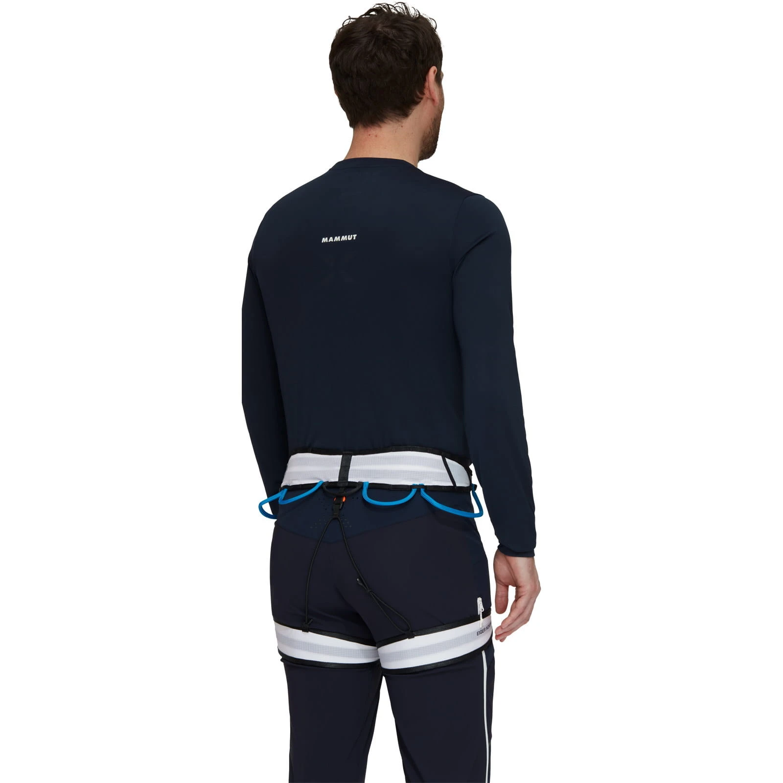 Der Eiger Nordwand Harness von Mammut eignet sich für anspruchsvolle Alpin-, Eis- und Felsklettereien. Der Klettergurt ist sehr leicht und komplett ausgestattet, ohne dabei auf Komfort zu verzichten. Das strapazierfähige und vollständig recycelte Ripstop-Material sorgt für Sicherheit und die optimierte Form für volle Bewegungsfreiheit. Die beiden vorderen Materialschlaufen des Eiger Nordwand Harness sind groß und stabil, die beiden hinteren kleiner und weicher, um genügend Stauraum und einen optimalen Sitz mit Rucksack zu gewährleisten. Sechs Positionen für die Eiskarabiner pro Seite sorgen für genügend Flexibilität.