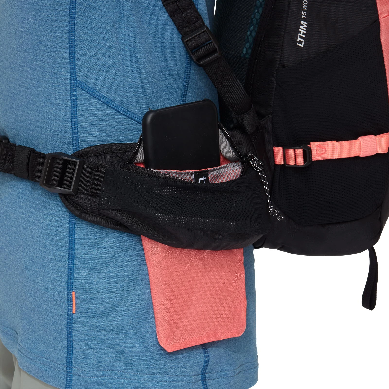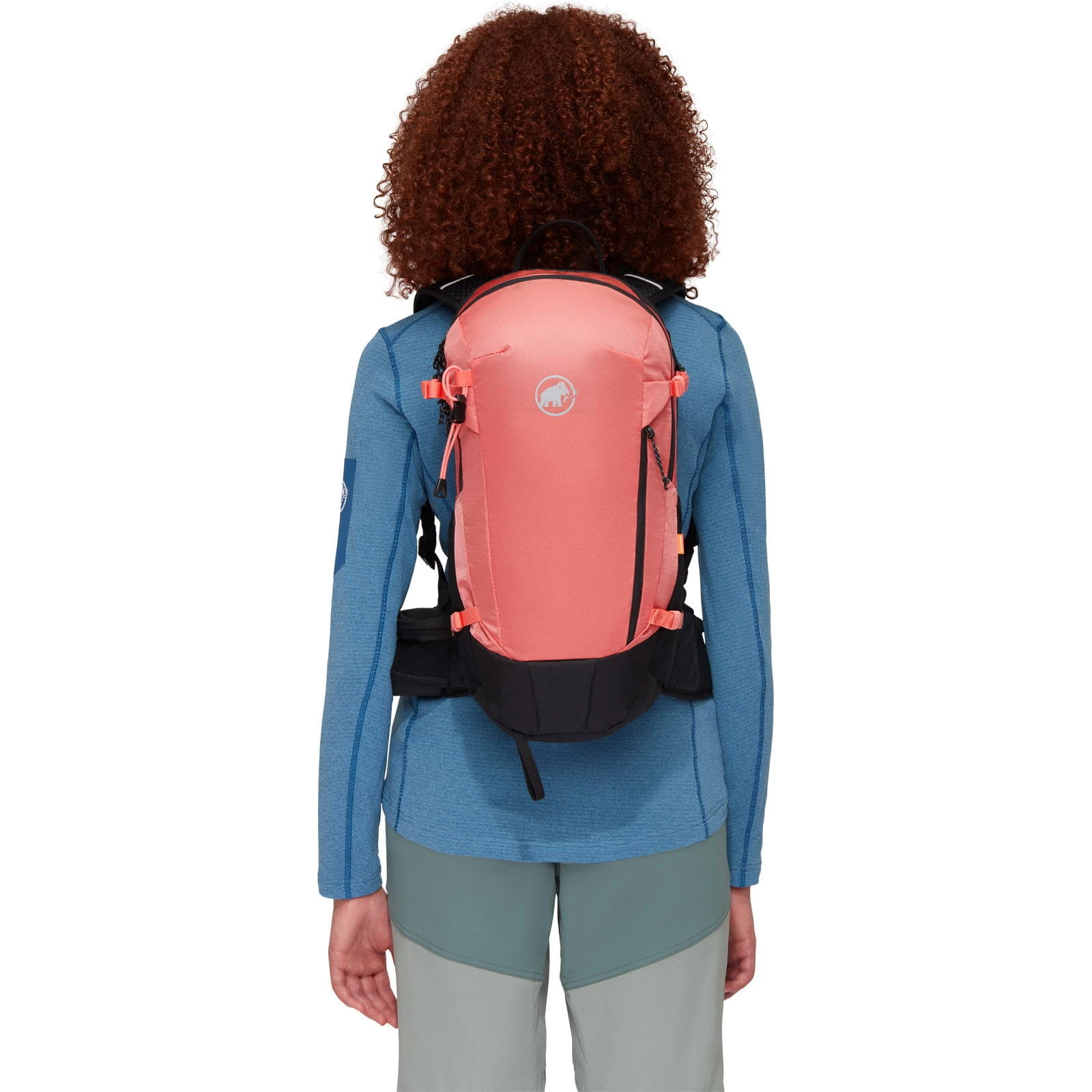 Der Lithium 15 Women von Mammut für Damen ist ein leichter und kompakter Wanderrucksack mit top Ausstattung, er ist optimal für kleinere Tagestouren. Der Lithium 15 Women ist mehrheitlich aus recycelten Materialien hergestellt und die dauerhaft wasserabweisende Imprägnierung ist PFC-frei. Dank der besonders leichten und atmungsaktiven Schulterpolsterungen besitzt der Tagesrucksack einen hohen Tragekomfort und die Luftkanäle im 3D EVA-Schaum sorgen am Rücken für eine gute Kühlung. Das Tragesystem und die Schulterträger sind speziell auf die weibliche Anatomie zugeschnitten. Der Lithium 15 Women besitzt eine umfangreiche Ausstattung wie z.B. eine Regenhülle, eine Stockhalterung oder einen gepolsterten und abnehmbaren Hüftgurt mit einer ausklappbaren Tasche für das Smartphone.