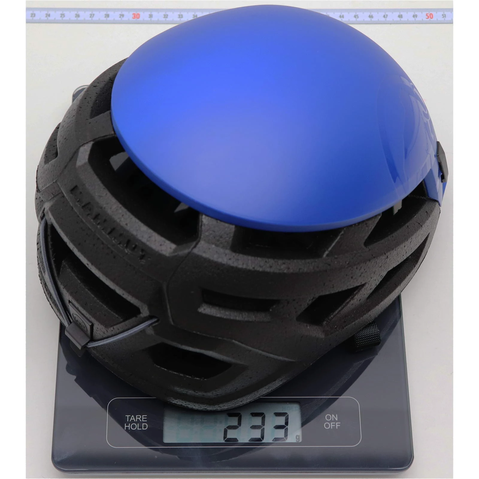 Ausstattung: EPP-Kern kombiniert mit einer partiellen Hartschale, ergonomische Innenform mit angenehmer Polsterung, große Belüftungsöffnungen für gute Luftzirkulation und Wärmeabfluss, minimalistisches und dadurch ultraleichtes Einstellsystem, durchgehendes, voll verstellbares Kinnband für optimalen Halt, 2 Clips an der Front und eine Gummilasche an der Rückseite zur Fixierung einer Stirnlampe