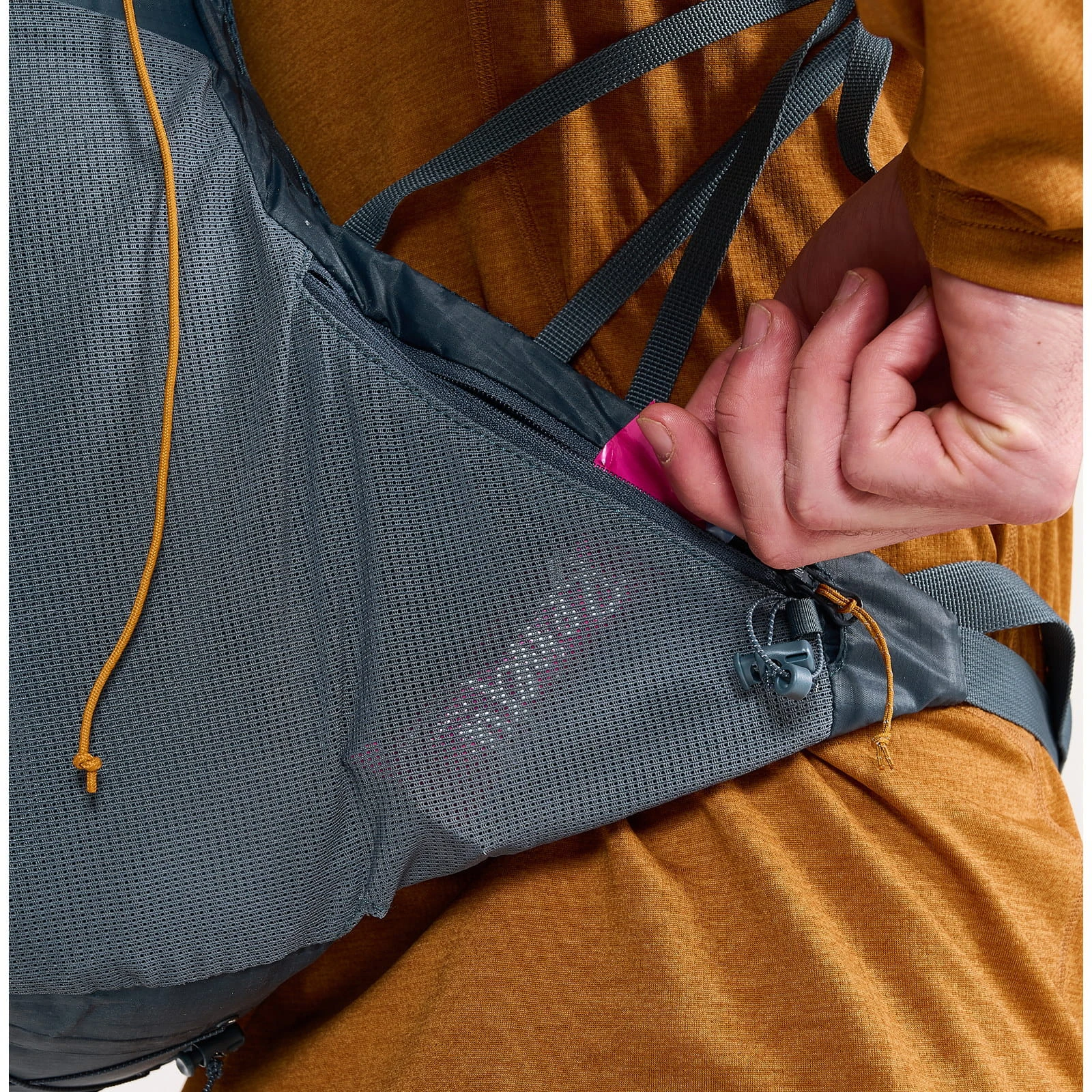| Befestigungsmöglichkeiten | Stöcke, Trinkflasche |