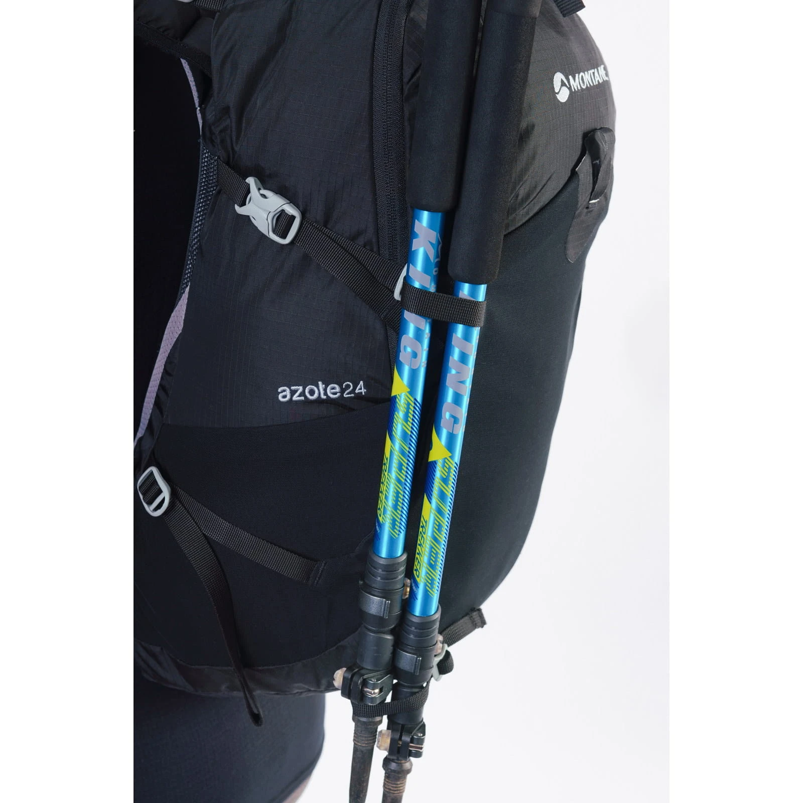 Der Women’s Azote 24 von Montane für Damen besitzt das anpassbare ZephyrAD Rückensystem mit einem Klettverschlusssystem, welches ein leichtes verstellen der Größe ermöglicht. Zudem enthält das Rückenpolster Lüftungskanäle, welche die Feuchtigkeit abwendet und den Tragekomfort erhöhen. Der Wanderrucksack besitzt versetzte Click and Go Brustgurte, die beliebig verstellt werden können. Der vorgeformte Hüftgurt mit Reißverschlussfächer und Trageriemen bieten ein angenehmes Tragen. Der Rucksack verfügt unter anderem über zwei seitliche Taschen aus Meshmaterial, ein dehnbares Vorderfach, seitliche Kompressionsriemen und einer Stockhalterung.