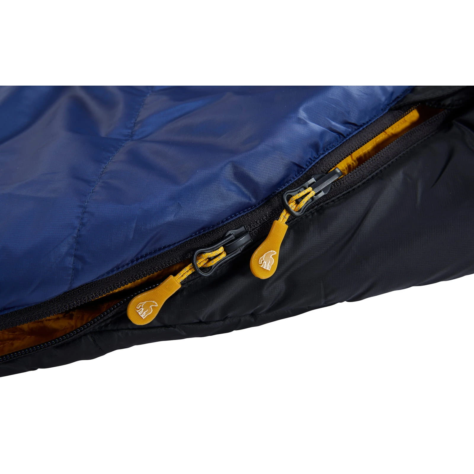 Der Puk +10° Curve ist ein robuster, gemütlicher Sommer-Schlafsack von NORDISK. Im Schulter- und Kniebereich ist er weiter geschnitten, der Fußbereich ist in Haiflossenform gestaltet. Außen kommt ein widerstandsfähiges Ripstop-Material, innen ein weiches Soft-Touch-Gewebe zum Einsatz, als Füllung sorgt die hochwertige Norguard S-PO 85 Füllung für gute Isolation. In warmen Nächten kann der Schlafsack komplett geöffnet werden.