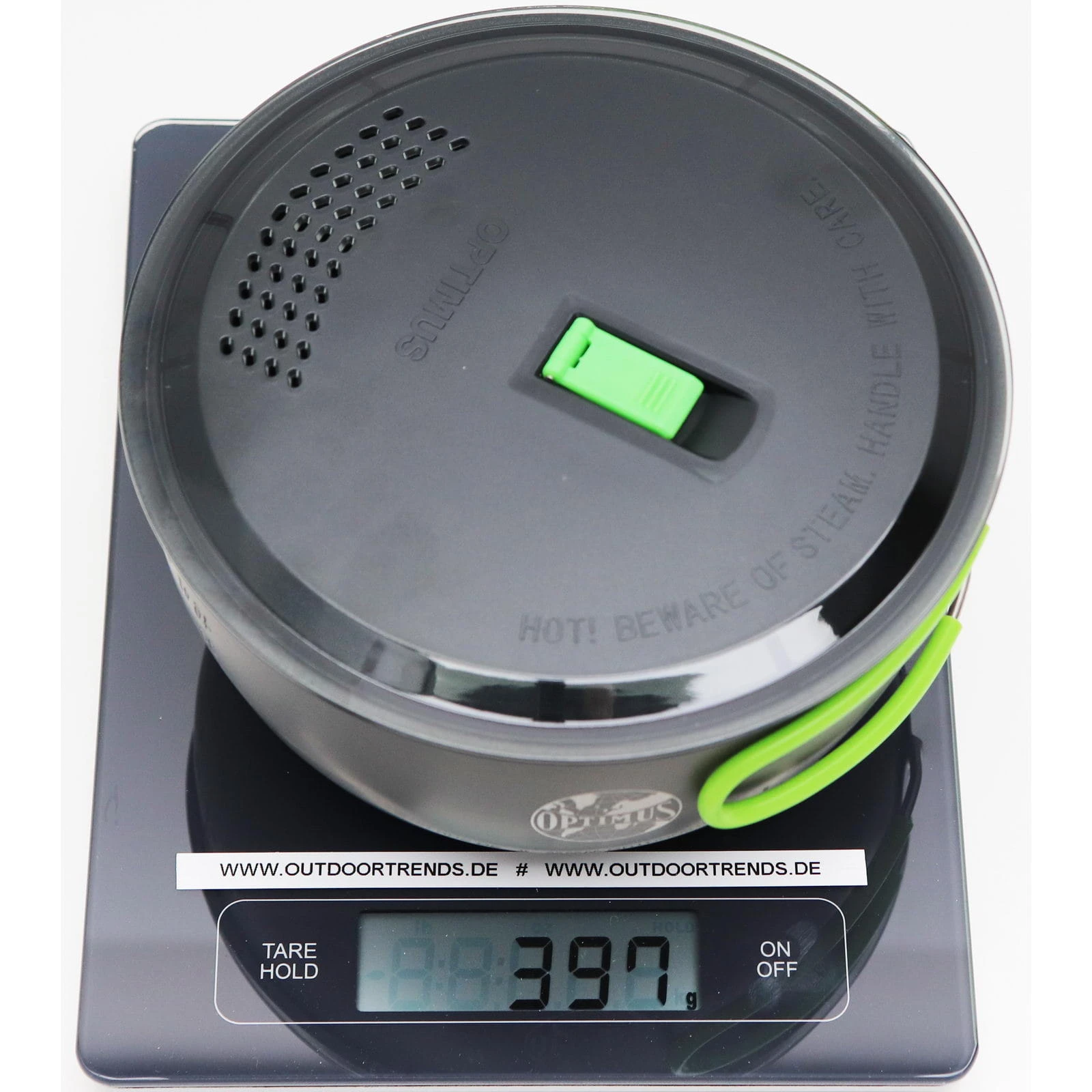 Der Optimus Terra Xpress HE Kochtopf mit 1,75 Liter Volumen besitzt eine Antihaftbeschichtung und ist perfekt wenn Kochgeschirr mit niedrigem Gewicht gefragt ist, der Topf inkl. Deckel wiegt nur 397g. Die Butterfly-Griffe, die beim Kochen absolute Stabilität garantieren, werden eng an den Topf angelegt, damit sich beim Packen nichts verheddern kann. Der praktische transparente Topfdeckel besitzt ein integriertes Sieb, durch dieses kann Wasser super abgegossen werden.