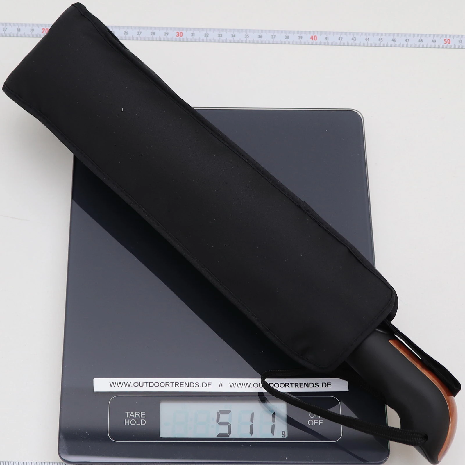 Der Wind-Trek in Größe L von Basic Nature ist ein sturmfester und kompakter Regenschirm für unterwegs aus verstärkten Fiberglasfasergestänge (der Arm ist aus Aluminium). Der Schirm ist mit einem Windkanal versehen, um starken Windböen standzuhalten. Durch den beschichteten Teflonstoff ist er wasserabweisend und schnelltrocknend. Die Einhandbedienung erleichtert das Öffnen und Schließen des Schirmes. Der stilvolle und ergonomisch geformte Griff liegt durch die Gummierung angenehm in der Hand.