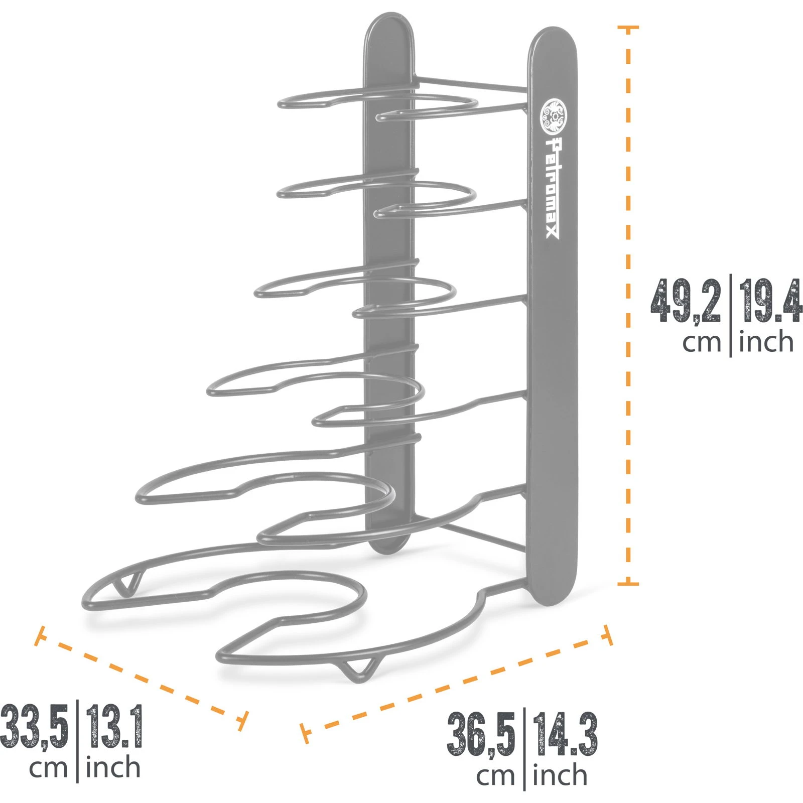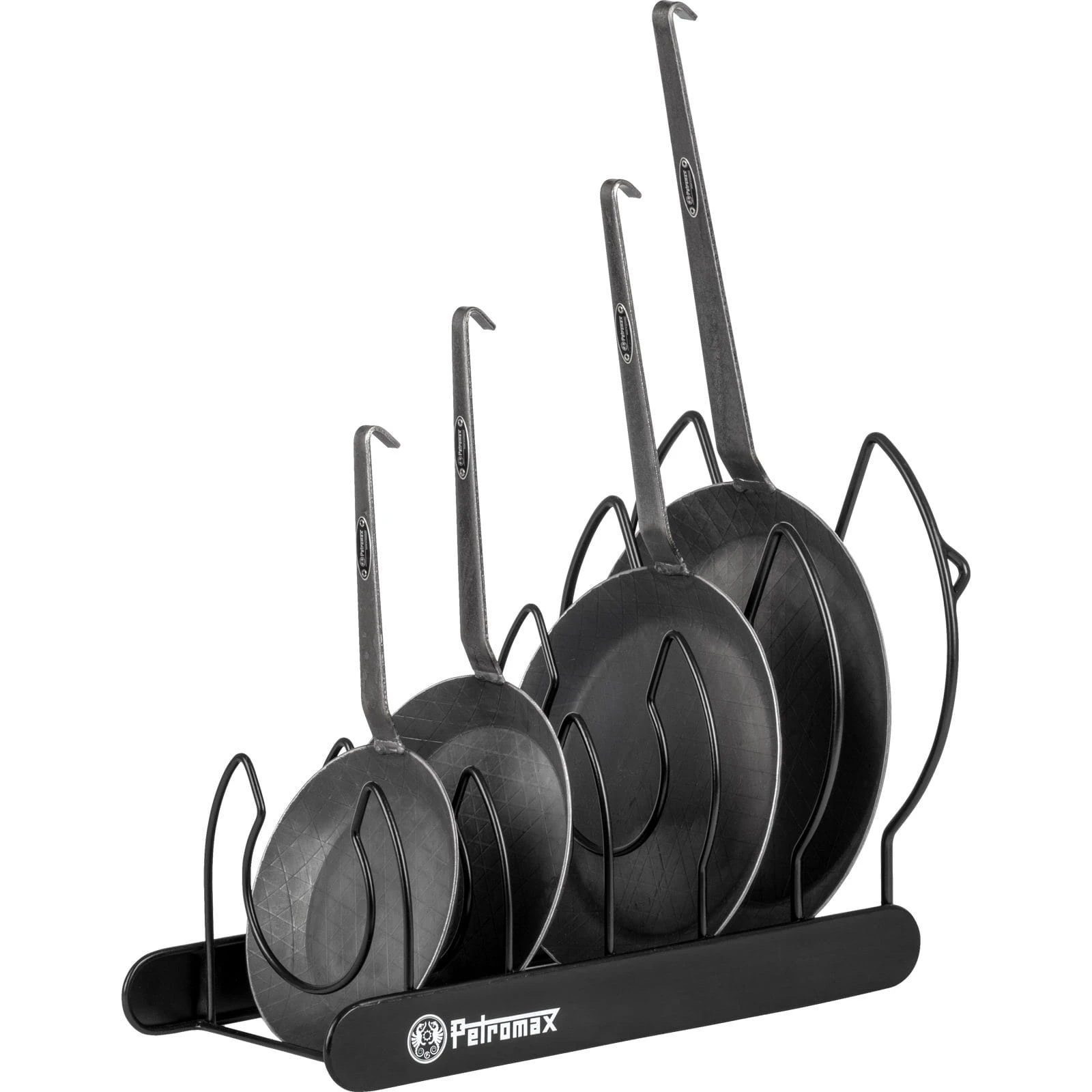 | Merkmale | die Pfannen bleiben kratzerfrei und trocknen nach dem Säubern auf dem Pfannenhalter, formgenaue Anpassung an den Pfannenkörper durch gewölbten Stahlbügel, griffbereite und übersichtliche Aufbewahrung, vertikales und horizontales Positionieren der Feuerpfannen möglich |