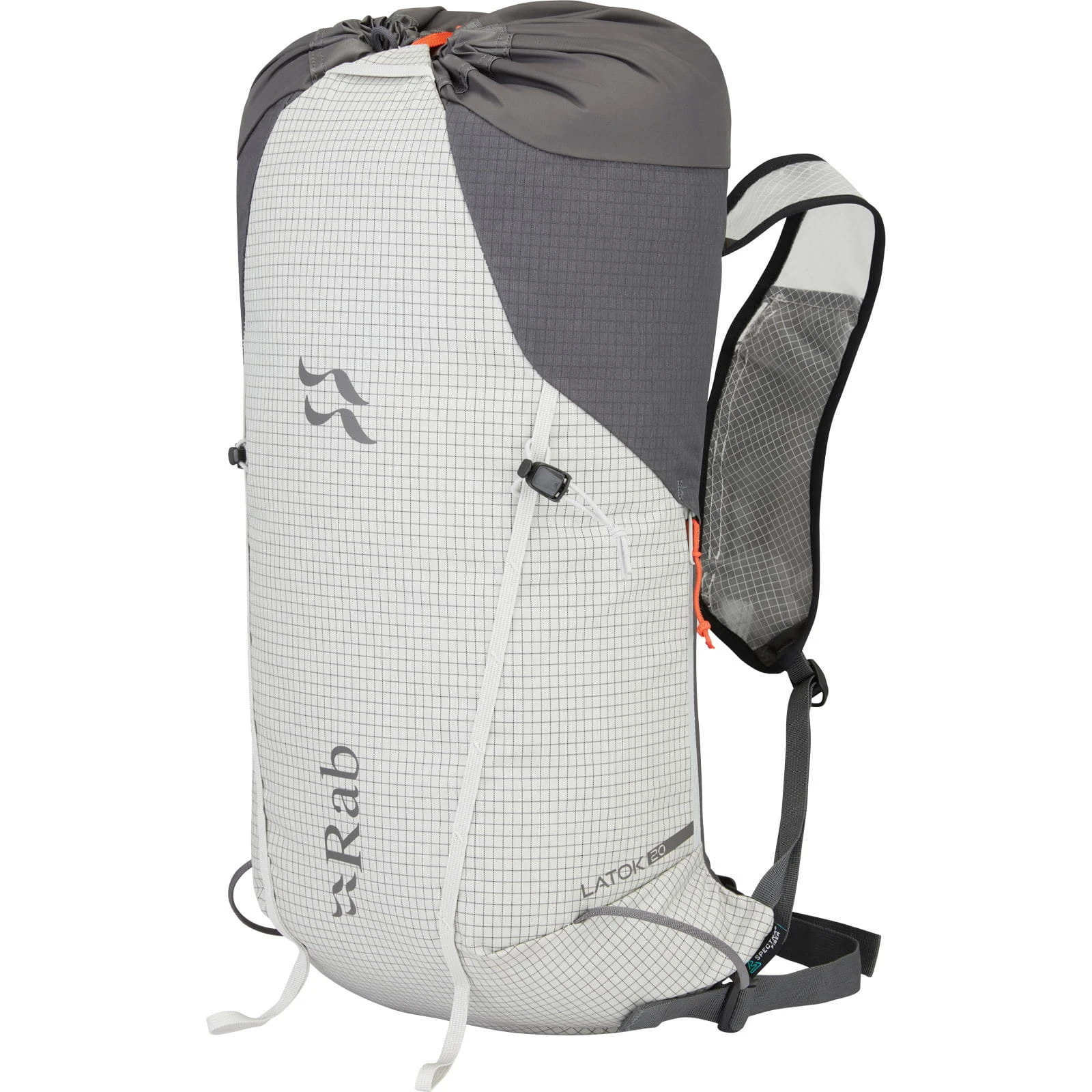 Der Latok 20 von Rab ist ein extrem robuster und ultraleichter Alpinrucksack aus extrem strapazierfähigem und abriebfestem Cordura-Material mit Spectra® Ripstop. Dank der Spectra®-Fasern, die im Verhältnis zu ihrem Gewicht 15-mal stärker als Stahl sind, hält der Rucksack selbst dem rauesten Felsen und Eisbedingungen stand. Das X-SHIELD™-Rückensystem ist so konzipiert, dass sich der Rucksack eng am Rücken anliegt und dank der vorgeformten Rückenplatte und der zusätzlichen Riemenpolsterung auch bei steilen Aufstiegen volle Beweglichkeit bietet. Das schneeabweisende Rückenteil sorgt für gleichbleibendes Gewicht des Rucksacks. Das Tragesystem des Alpin-Rucksacks wurde von leichten Trailrunning-Westen inspiriert und bietet Leichtigkeit, Komfort und Bewegungsfreiheit. Der Latok 20 verfügt über einen verstellbaren, körperumschließenden Brustgurt aus Mono Mesh, einem robusten, aber hoch atmungsaktiven Gewebe, das um 50% leichter ist und um 70% weniger Flüssigkeit aufnimmt als andere Spacer-Mesh-Gewebe. Das sorgt für eine gute Luftzirkulation und eine angenehme Gewichtsverteilung auf dem Rücken. Der Latok 20 ist einfach, schlank und stabil und bietet Alpinisten und Bergsteigern eine Vielzahl an nützlichen Features bei minimalem Gewicht. Mit abnehmbaren Elementen, für Tage an denen man ultraleicht unterwegs sein möchte und einer extrem robusten Ausführung begleitet der Tourenrucksack zu den anspruchsvollsten Zielen. Dank zahlreicher Befestigungsmöglichkeiten für z.B. Pickel, Stöcke und Seil ist die Ausrüstung immer griffbereit Der Rucksack lässt sich mit einem Kordelzug öffnen und die Ausrüstung wird durch die wetterfeste Deckelklappe geschützt. Eine Reißverschlusstasche innen, eine seitliche Reißverschlusstasche außen und zwei auf den Schulterträgern bieten Platz für Kleinteile und Wertsachen. Der Rucksack ist mit einer fluorcarbonfreien DWR-Beschichtung imprägniert und mit recyceltem Material gefüttert, hat einen schlanken Schnitt zur Gewichtsreduzierung und ist perfekt für Alpinisten, die auf jedes Gramm achten müssen.