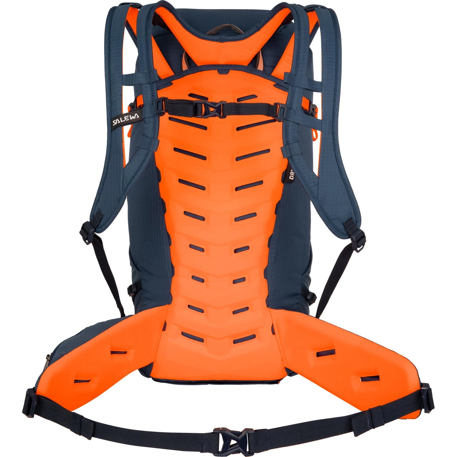 Der Mountain Trainer 2 28 von Salewa ist ein leichter, komfortabler und gut belüfteter 28-Liter-Rucksack für technisch anspruchsvolle Wandertouren und Klettersteige. Er verfügt über ein körpernahes Dry Back Tragesystem und geteilte Schulterriemen für einen festen Sitz, verbesserte Atmungsaktivität und viel Bewegungsfreiheit. Durch eine Reduzierung der Kontaktfläche und 3D-Lüftungskanäle, die für eine stärkere Verdunstung und eine Verringerung der Temperatur im mittleren Rückenbereich sorgen, bleibt der Rücken dennoch trocken. Das zweiteilige Kompressionssystem (TCS) und ein Hüftgurt garantieren, dass der Rucksack gut sitzt und die Last optimal verteilt wird. Der Hüftgurt umschließt komplett die Hüfte und ist mit einer zusätzlichen Ausrüstungsschlaufe für Klettersteig-Karabiner und einer praktischen Mesh-Tasche mit Reißverschluss ausgestattet. Für mehr Stabilität und verbesserte Kontrolle verfügt das Twin Compression System (TCS) über einen oberen und einen unteren Kompressionsbereich, der eine problemlose Regulierung des Volumens und eine zentrale Stabilisierung der Last ermöglicht. Die leichten Split Shoulder Straps geben den Armen viel Bewegungsfreiheit und reduzieren die Kontaktfläche ebenfalls, sodass man weniger schwitzt und die Luft besser zirkulieren kann. Der schlanke und agile Wanderrucksack hat ein großes Hauptfach mit Zugang von oben und von der Seite und ein leicht zugängliches Frontfach. Er bietet zusätzlich Daisy-Chain-Schlaufen, Befestigungsmöglichkeiten für Trekkingstöcke und Eispickel, eine integrierte und abehmbare Regenhülle, leicht zugängliche Mesh-Seitentaschen und Reißverschlussfach auf dem Deckel für Wertgegenstände.