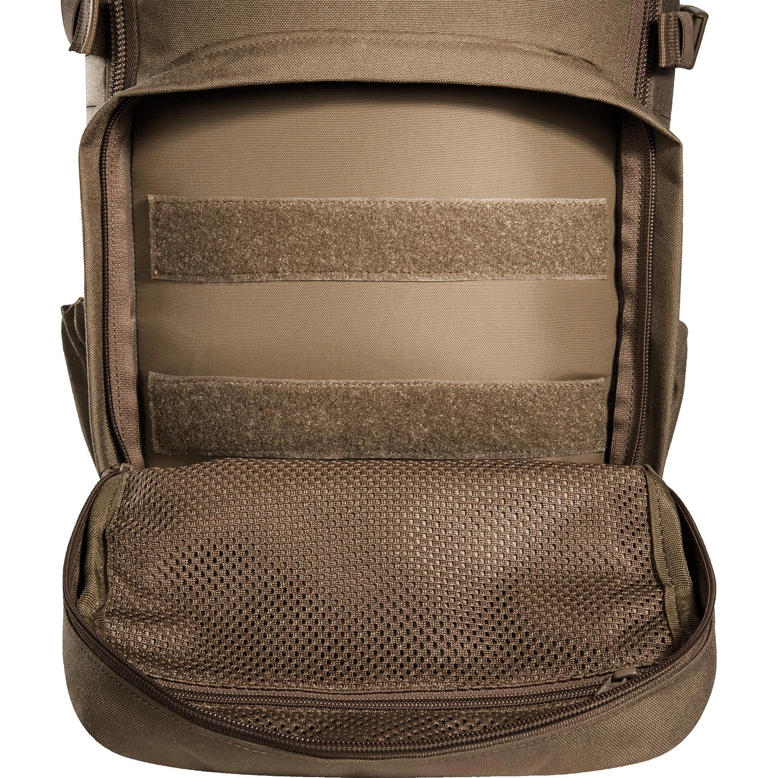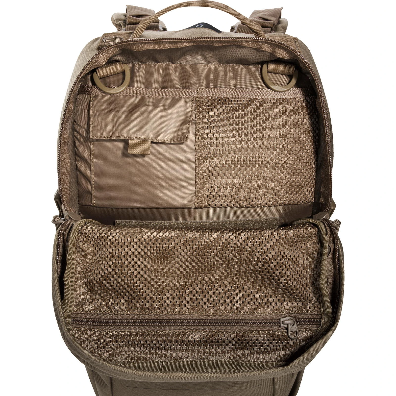 Der Modular Combat Pack von Tasmanian Tiger ist ein universeller, kleiner Survivalrucksack mit zwei Aufsatztaschen und elastischen Seitentaschen. Basierend auf dem Vorgängermodell, bietet der Combat Pack eine glatte, aufgeräumte Optik und eine optimierte Ausstattung. MOLLE-Klett im Hauptfach kann zur individuellen modularen Erweiterung genutzt werden. MOLLE in Lasercut-Ausführung auf der Front und an den Seiten ermöglicht die Kombination mit weiterer Ausrüstung. Durch die spezielle Reißverschlussführung lässt sich der Rucksack mit dem komplett zu öffnenden Hauptfach auch als Toploader nutzen. Die Schultergurte lassen sich in der Länge verstellen, um den Rucksack über Westen zu tragen.