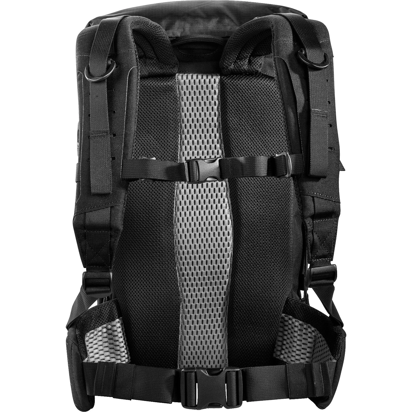 | Merkmale | Abnehmbare, gepolsterte Hüftflossen mit MOLLE-System in Lasercut-Ausführung, Fronttasche mit Reißverschluss, große MOLLE-Klettfläche innen, herausnehmbare Rückenplatte mit Aluschiene (individuell formbar), höhenverstellbarer Brustgurt, Lasercut MOLLE-System, Padded Back-Tragesystem, Roll-Top mit Reißverschluss in zwei Verschlusspositionen verwendbar, Tragegriff oben, zwei umlaufende Kompressionsriemen |