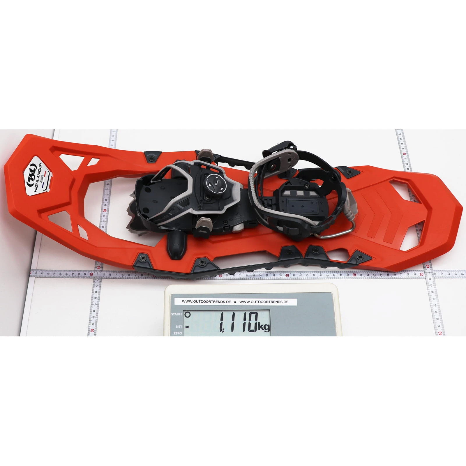 Die Highlander Original 2 in Größe L (70 bis 140 kg) von TSL stehen für Leichtigkeit und Grip. Die Schneeschuhe sind für erfahrene Wanderer geeignet und ideal für Touren durch unberührtes, wildes Terrain. Ihre Wespentaillenform erlaubt ein natürliches Gehen und gibt perfekten Halt. Die flexible Bindung ist mit einem Geräusch- und Stoßdämpfer (SSAS) ausgetattet und ermöglicht ein natürliches Abrollen. Der Rocker (hintere Aufbiegung) federt den Schritt ab und unterstützt die Abrollbewegung des Fußes, egal ob auf ebenen Flächen oder bei Steigungen. Das BOA® Fit System mit Stellrad hilft, die Spannung präzise und gleichmäßig zu verteilen, wodurch Druckstellen an der Vorderseite des Fußes deutlich reduziert werden. Festziehen der Fersenbindung mittels Ratschensystem für einen sicheren und guten Sitz. Mit der EASY ASCENT Steighilfe Automatikfunktion ist es nicht mehr nötig sich zum anpassen der Steighilfe zu bücken. Durch seine einfache Handhabung ermöglicht das Bindungssystem, die Schuheinstellung für spätere Ausflüge mit den Schneeschuhen zu speichern. Die mehrzackige Kralle, der strukturierte Rahmen, austauschbaren Grips am Rand und die Querstäbe sorgen für maximale Traktion auf weichem und kompaktem Schnee und sicheren Halt bei Steigungen oder steilem Gelände. Die Highlander Original 2 werden inklusive einer Schneeschuhtasche zur Aufbewahrung oder zum Transportieren geliefert.