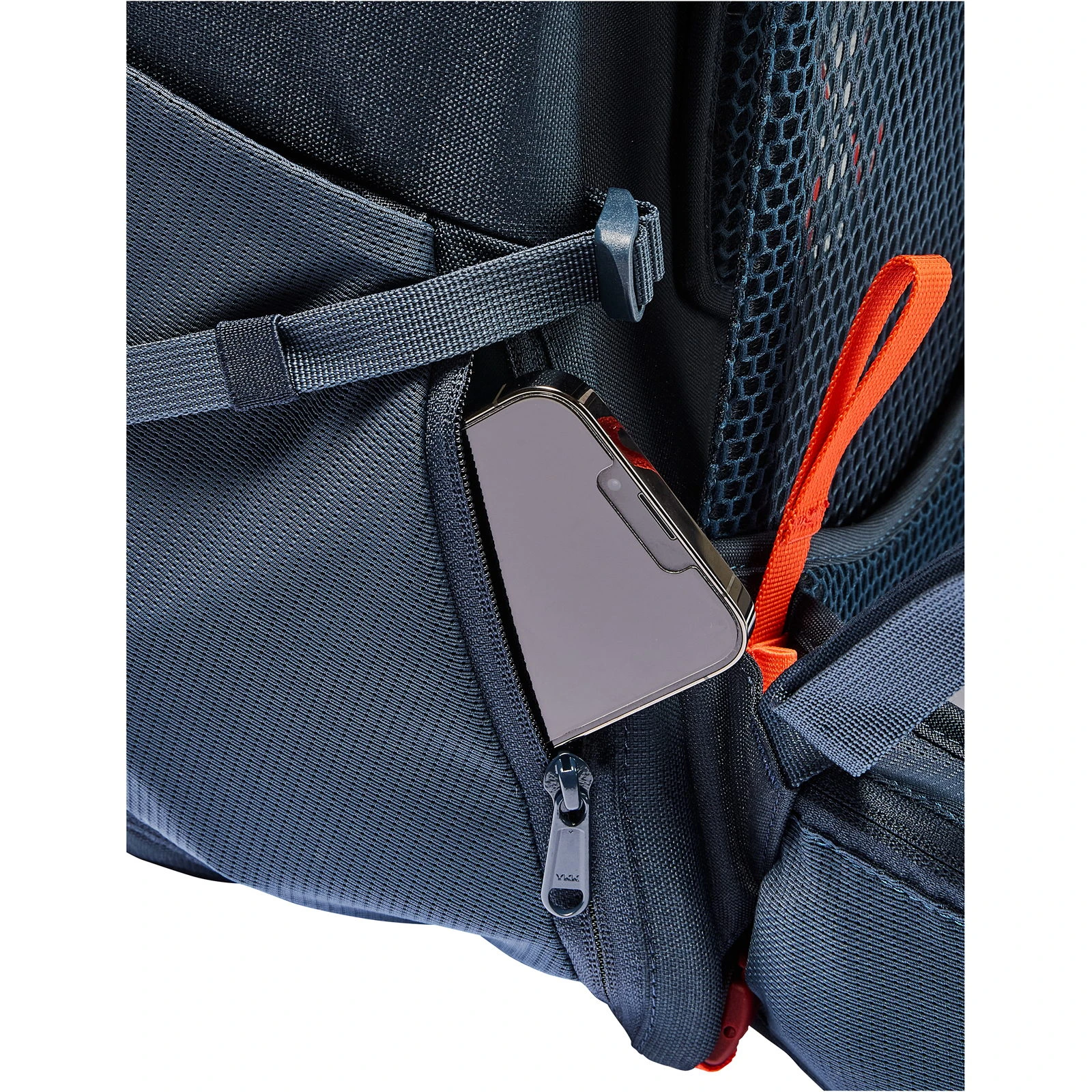 | Merkmale | Aufnahme für Helm, Blinklichthalterung, Bodenfach mit separatem Zugang von außen, ein seitliches Reißverschlussfach unten, Einschubfach im Frontfach hinter dem Werkzeugorganiser, Einschubfach vorne hinter dem Frontfach, gepolsterter Hüftgurt, großes Hauptfach, Halterung für Trinkblase, hinteres Fach mit Reißverschluss, höhenverstellbarer Brustgurt, integrierte Regenhülle in separater Reißverschlusstasche am Boden, Lastkontrollriemen, Materialschlaufen auf den Schulterträgern für Brille etc., Organizer für Werkzeug, Luftpumpe, etc. im großen Frontfach, reflektierende Elemente, Reißverschlussfach vor oben mit Schlüsselhalterung, zwei Einschubfächern und Reißverschlussfach aus Mesh, Reißverschlusstasche auf einem Hüftflügel, Schlauchdurchführung für Trinksystem, seitliche Kompressionsriemen, Trageschlaufe hinten oben, von Netzrücken auf Kontaktrücken umstellbar, zwei elastische Einschubfächer seitlich, Zwischenboden zwischen Bodenfach und Hauptfach kann geöffnet werden |