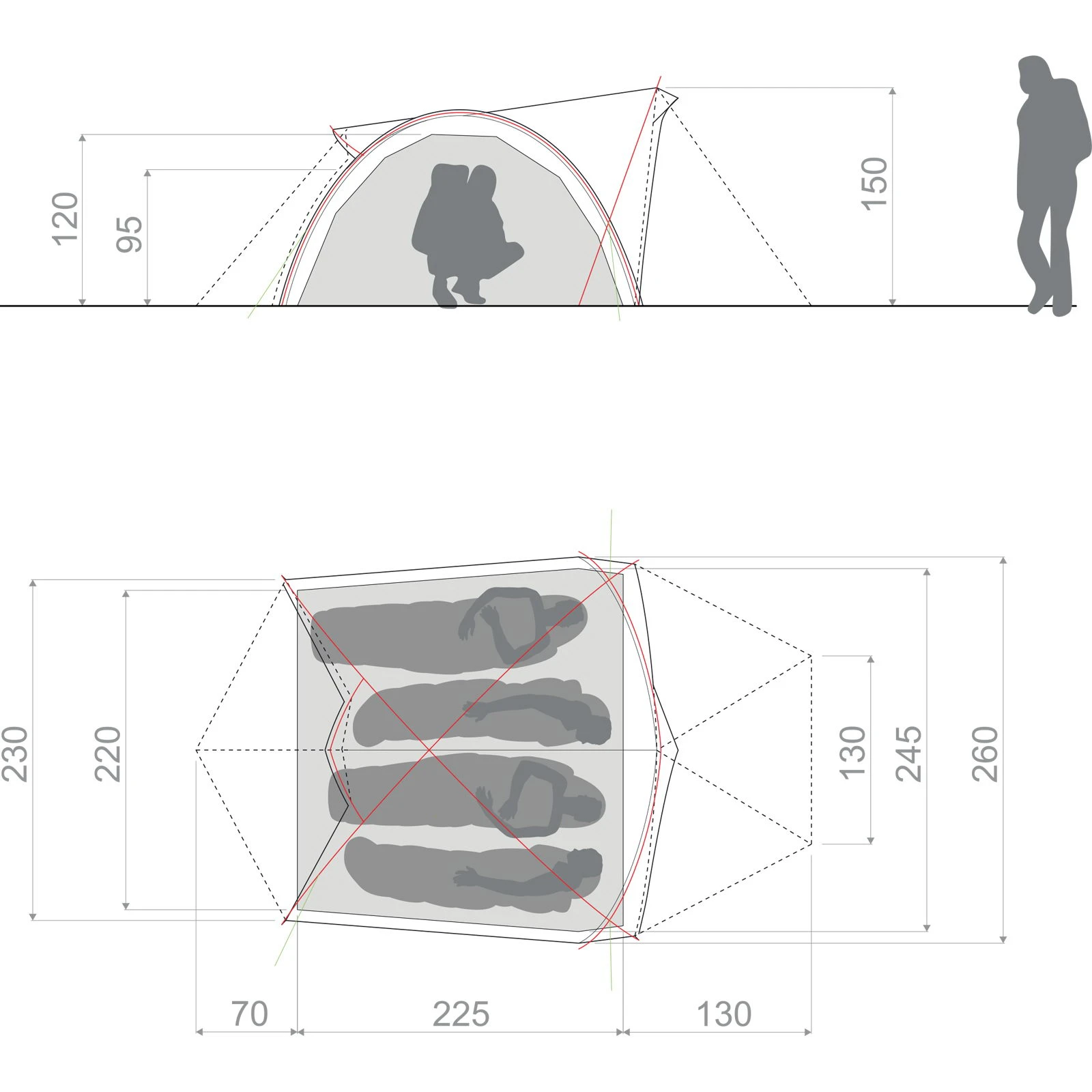 | Maße Außenzelt ca. | 425 x 260 x 150 cm |