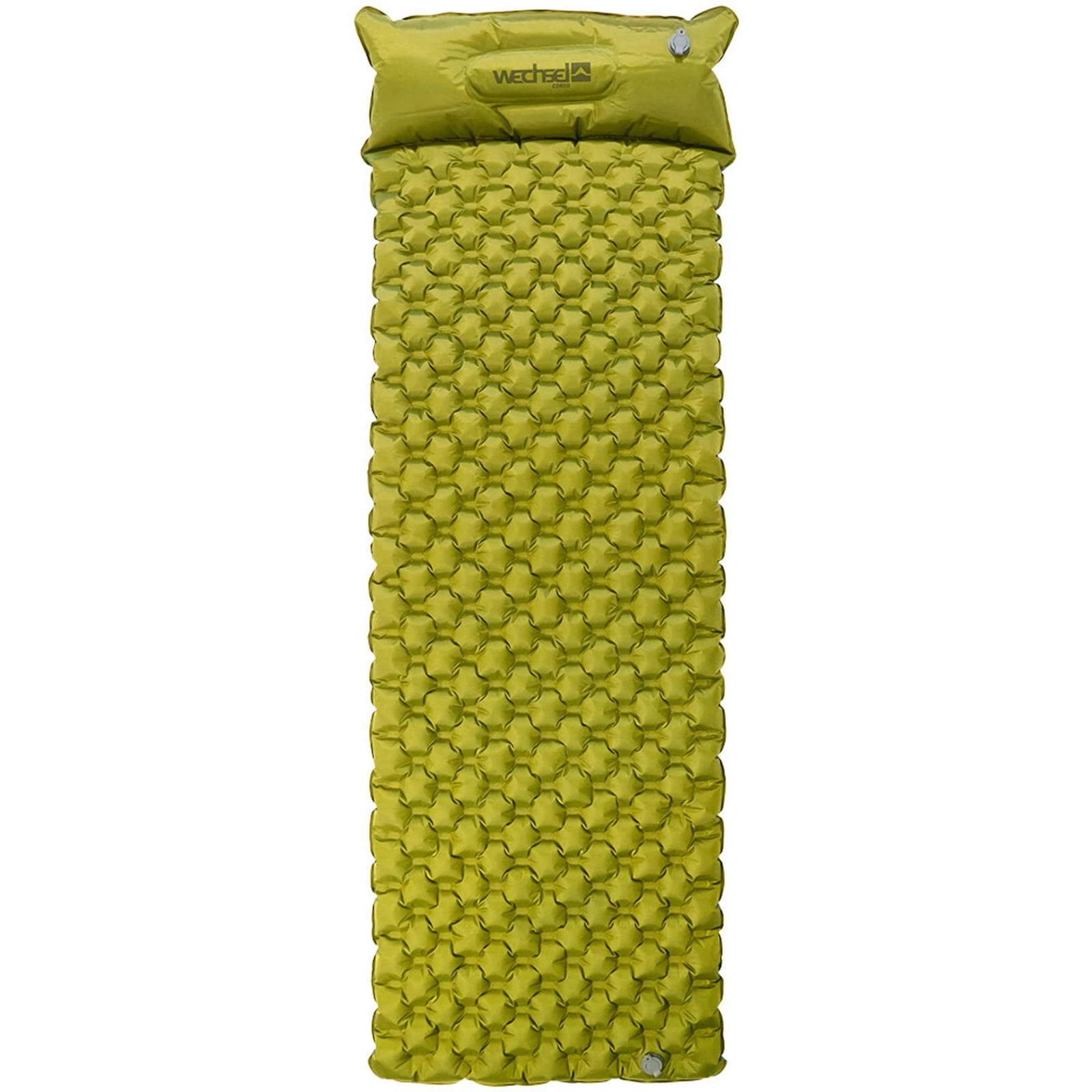 Die Coreo Mat von WECHSEL aus der Travel Line ist eine komfortable und sichere Luftmatratze für Camping oder Trekking. Das doppelte Luftkammersystem der Luftmatratze bietet zusätzlichen Komfort und Schutz. Im Falle eines Lecks bleibt eine Luftkammer als Sicherheitsreserve erhalten. Die Coreo Mat Luftmatratze besteht aus einer punktgeschweißten Konstruktion aus ineinander verbundenen Kammern. Die Luftverteilung passt sich der Körperform an und sorgt für eine ausgeglichene Liegeposition und der Härtegrad der Matratze kann individuell reguliert werden, z.B. härter auf der Unterseite und weicher auf der Oberseite. Die vielen kleinen Luftpolster gleichen auch größere Bodenunebenheiten aus und bieten, dank der Mattenhöhe von 7,5 cm und einer Mattenbreite von 62 cm, einen hohen Schlafkomfort. Auf dem Rücken schlafenden Personen bietet sie genügend Liegefläche, um die Arme an den Seiten bequem abzulegen. Das Ober- und Unterseitenmaterial besteht aus einem robusten 40D Rip Stop Nylon mit einer TPU Beschichtung. Die Luftmatratze ist mit drei Kombinationsventilen ausgestattet, die ein Einlass- und ein Ablassventil enthalten. Ein Ventil befindet sich auf der Oberseite, eines auf der Unterseite der Matte und ein separates Kombiventil für das Kissen. Der mitgelieferte Packsack dient auch als Pumpsack. Mit dieser cleveren Funktion ist die Coreo Mat Luftmatratze unschlagbar einfach und praktisch im Gebrauch.
