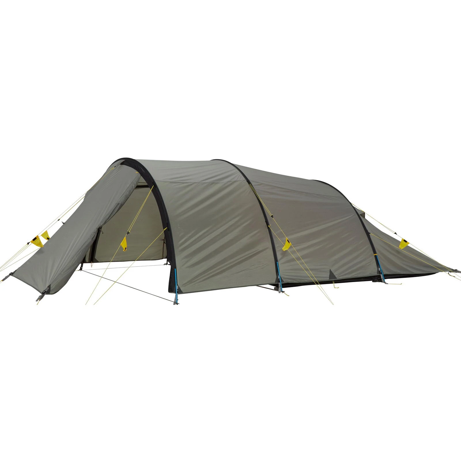 Das Intrepid 4 von Wechsel Tents ist ein Zelt für bis zu vier Personen mit großen, regengeschützten Eingängen und einer Apsis. Es hat drei durchgehende innenliegende Flachkanäle. Diese sind gut zu handhaben, bieten kaum Windwiderstand und minimieren so die Windgeräusche. Durch die besondere, steile Form des Vorzeltes kann man darunter gut sitzen und die gesamte Fläche nutzen. Das Innenzelt lässt sich im aufgebauten Zustand -je nach Wunsch- ganz oder teilweise ein oder aushängen. Am D-förmigen Innenzelteingang ist eine große, vollständig abdeckbare Moskitonetztür angebracht. Innenzelttaschen und ein Gearloft aus Moskitonetz bieten schnellen Zugriff für rasch benötigte Kleinteile. Die Apsis besitzt zwei Seiteneingänge und eine aufrollbare Frontöffnung, die bei geschlossener Seitentür einen exzellenten Wind- und Wetterschutz bietet. Die schließbare Belüftung am Innenzelt, sowie vier Apex Lüfter am Außenzelt sorgen für bestmögliche Ventilation. Das Zelt hat eine aerodynamisch günstige Form und ist dadurch sehr sturmstabil. Obwohl beim Intrepid 4 nicht auf Komfort verzichtet werden muss, ist es immer noch ein relatives Leichtgewicht.
