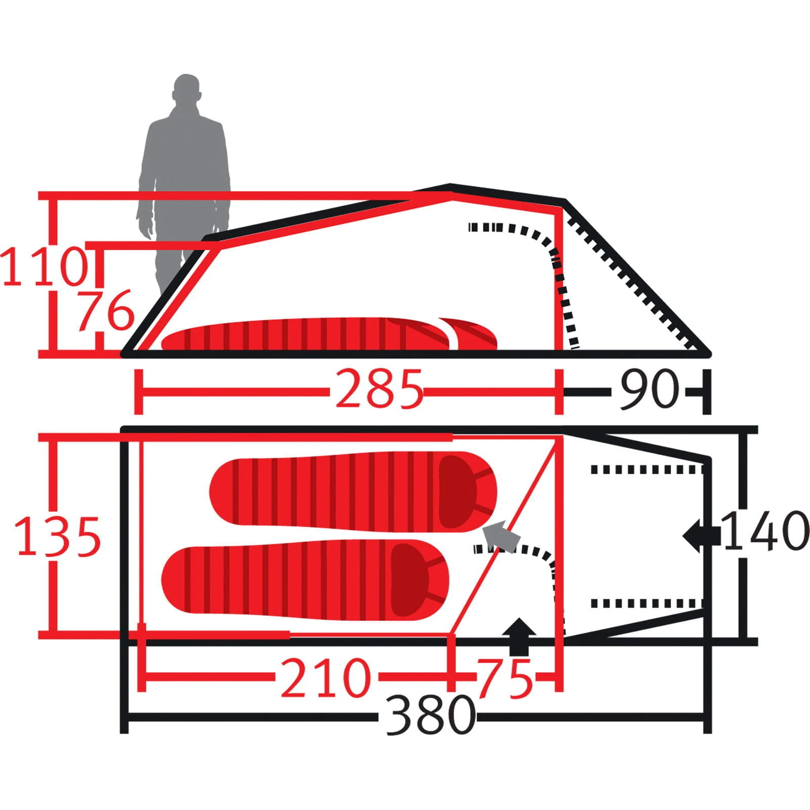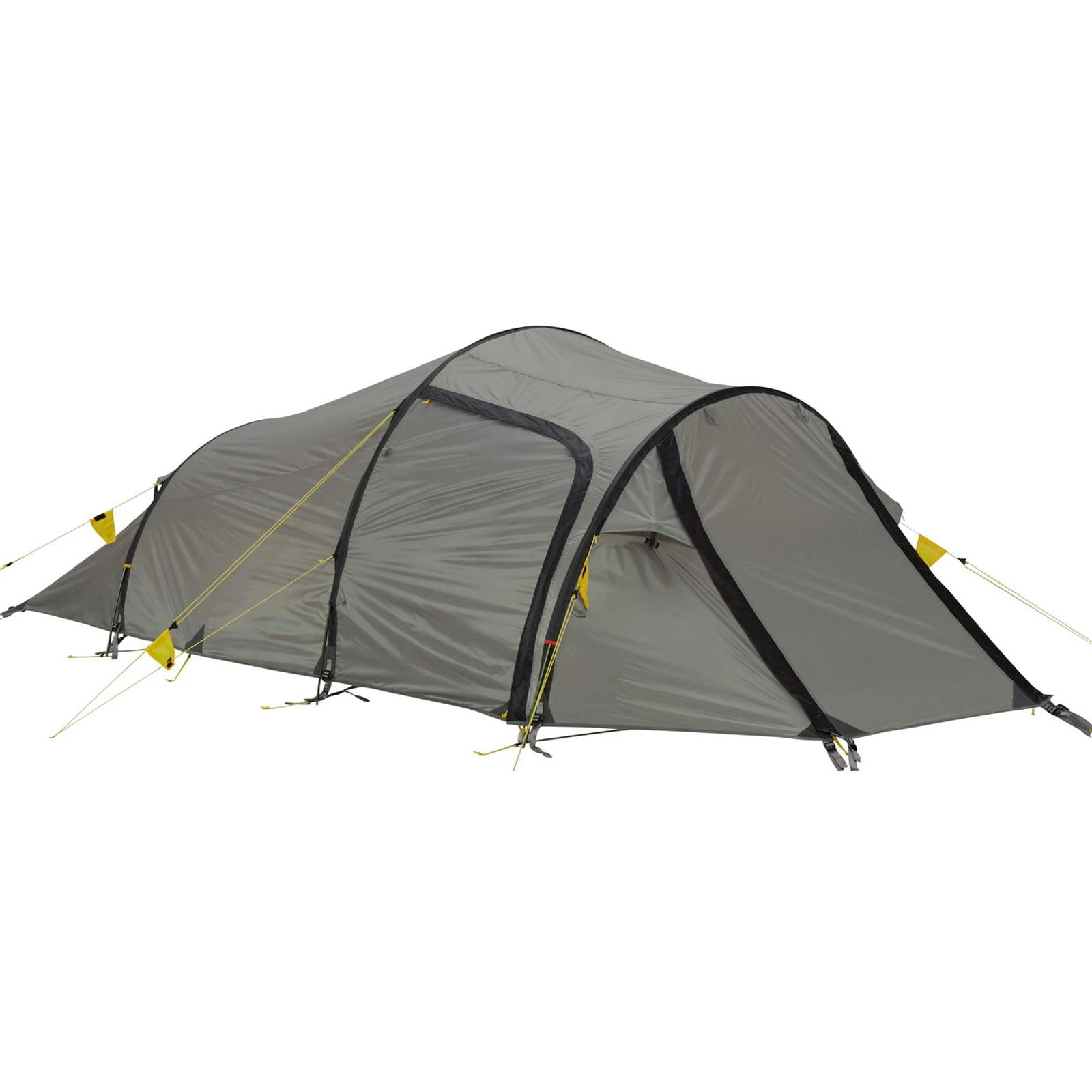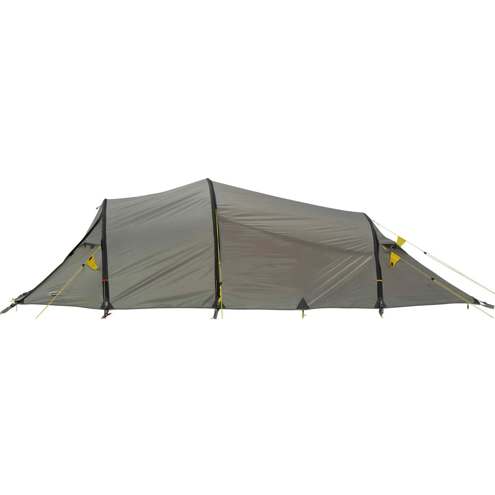 In seiner Art unverwechselbar: Eines der erfolgreichsten Modelle von Wechsel Tents: das Outpost 2 ist seit Beginn an im Zelt Programm von Wechsel. Sehr geräumig für 2 Personen. Der einzigartige Innenzeltschnitt bietet auch einer sehr großen Person einen komfortablen Schlafplatz. Es bietet die Vorteile einer asymmetrischen Tunnelzeltform wie z.B. relativ geringes Gewicht und hohe Sturmstabilität bei großer Apsis und geräumigem Innenzelt. Es hat einen regengeschützten, abdeckbaren Moskitogaze-Innenzelteingang in D-Form und eine große Apsis mit zwei Eingängen. Die großflächige Dachlüftung der Apsis, die sich vom vorderen bis zum mittleren Gestängebogen erstreckt, verbessert deutlich die Belüftung. Um die Abdeckung dieser Fläche zu realisieren, wurde das Zelt mit effizient zu handhabenden außen liegenden Gestängekanälen versehen. Das Innenzelt bietet viel Platz für zwei Personen und ist mit einer rückwärtigen Ventilation und vielen Taschen versehen. Der seitliche Eingang und ein vorderer Eingang machen das Handling mit Gepäck einfach. Bei aufgerolltem vorderen Eingang bietet sich ein hervorragender Panoramablick aus dem Zelt. Im Vergleich zum Modell bis 2018 verzichtet Wechsel Tents auf die Dachlüftung im Apsisbereich.