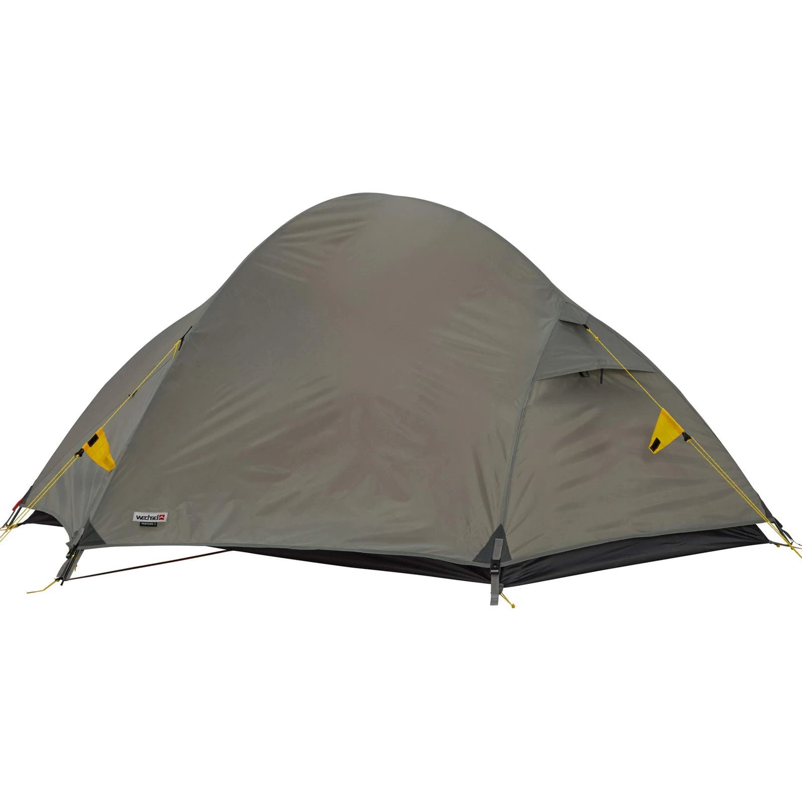 Das Venture 2 ist ein freistehender Geodät von Wechsel Tents für zwei Personen – inklusive zwei Apsiden. Zwei Aluminium Knotenpunkte am Gestänge sorgen für eine gute Windstabilität. Das Innenzelt des Venture wird zuerst aufgebaut. Der zusätzliche Gestängebogen bildet die Apsis, sobald das Außenzelt drüber gespannt ist. Für einen leichten Wetterschutz, kann das Außenzelt mithilfe des Groundsheets (optional erhältlich) allein aufgestellt werden. Das Innenzelt ist in den Türen sowie am Fuß- und Kopfende mit Mosquitogazen ausgestattet. Drei zusätzliche Innenzelttaschen sorgen für Ordnung und bieten Platz für sonst herumliegenden Kleinkram.