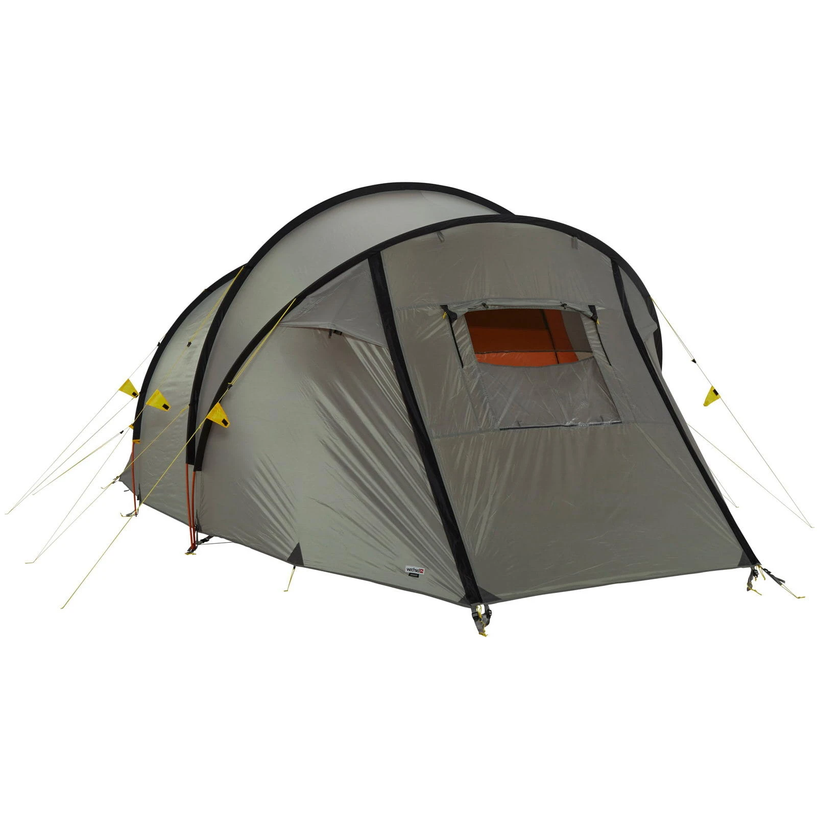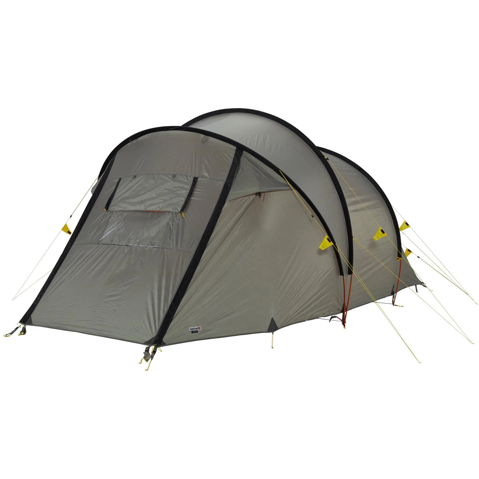 Das Voyager von Wechsel Tents ist ein Tunnelzelt für bis zu vier Personen mit kompakter Form und hoher Decke und Stehhöhe für jede Menge Komfort. In der geräumigen Apsis ist genügend Platz für ein Campingtisch und vier Stühle, sodass der Aufenthalt auch bei Regen zu einem Vergnügen wird. Typisch für ein Tunnelzelt dieser Bauart und dank farblich markierter Zeltbögen und dazugehöriger Kanäle ist das Voyager einfach und schnell aufgebaut. Das Zelt lässt sich auch von nur einer Person spielend leicht aufbauen. Das Voyager ist das ideale Zelt für kleine Familien, die kein riesiges und schweres Zelt mitnehmen und aufstellen wollen und trotzdem nicht auf den Komfort eines Familienzeltes verzichten wollen. Das Innenzelt ist breit genug für vier Isomatten und lässt sich bei Nutzung durch drei Personen auf 2/3 Breite mit einer Stoffbahn in zwei Kabinen mit jeweils eigenem Eingang unterteilen. An der Vorderseite der Kabinen befinden sich mehrere Taschen, in denen reichlich Kleinkram verstaut werden kann.